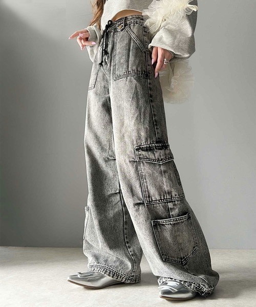 参考商品名:《Javaジャバコラボ》旬なこなれ感。ヴィンテージ加工裾ドロストワイドデニムパンツ