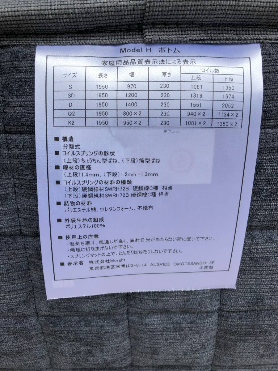ボトムマットレスのみの出品です。トッパーマットレスはありません。