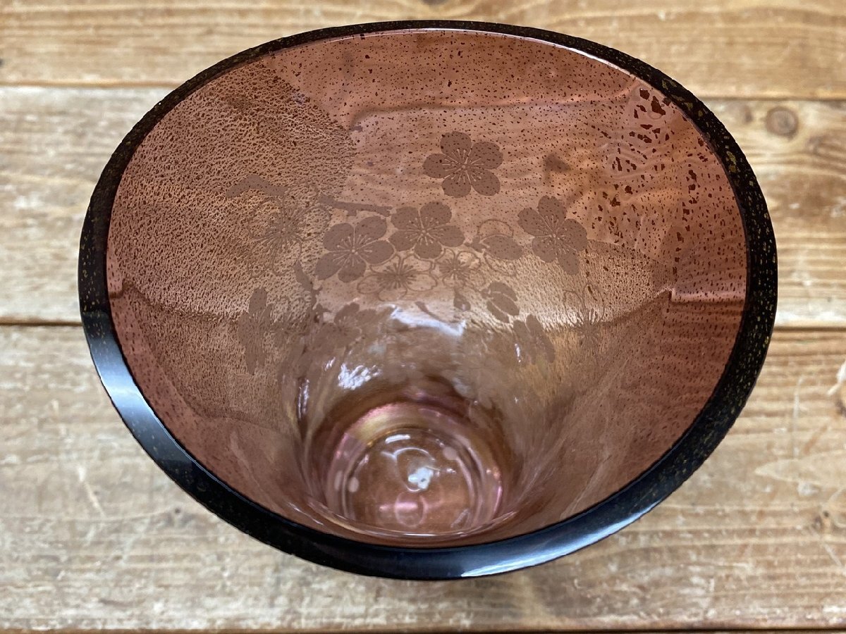 【YB-2535】美品 東京都知事指定 伝統工芸品 花瓶 ガラス 敬老の日 台座付 共箱付 インテリア 高さ約24cm 東京引取可 同梱可【千円市場】
