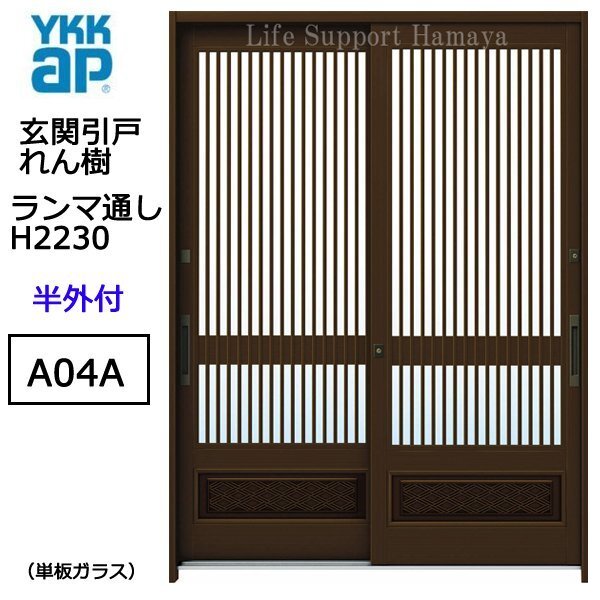 | ■ 商品名 | アルミサッシ 玄関引戸 れん樹 A04A 半外付 ランマ通し 単板 |