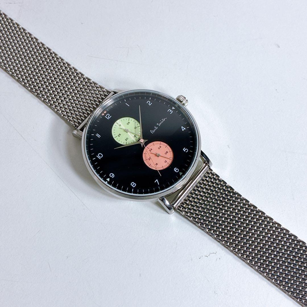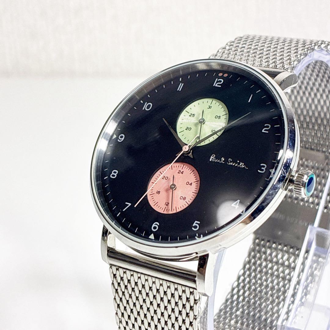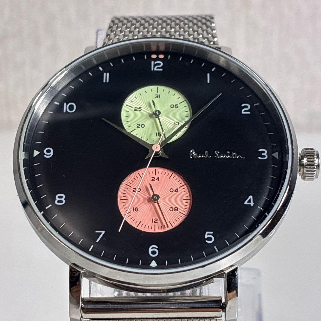 特徴:黒い文字盤に、緑とピンクのインダイヤルが配されたデザイン
