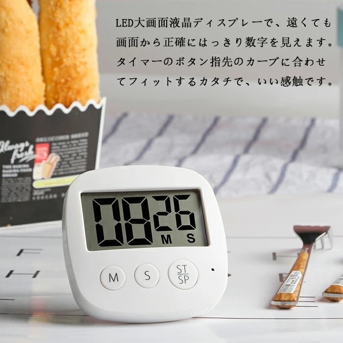 【多機能タイマー】LCDデジタル画面を搭載し、数字表示が見やすく、時間の確認が簡単のデジタルタイマー、時間設定の範囲:99分59秒。