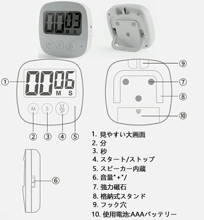 【スピーカー内蔵】シンプルなデザイン、コンパクトサイズで収納に便利、スピーカー内蔵することで、設定時間となりましたら、大音量の音でお知らせします。