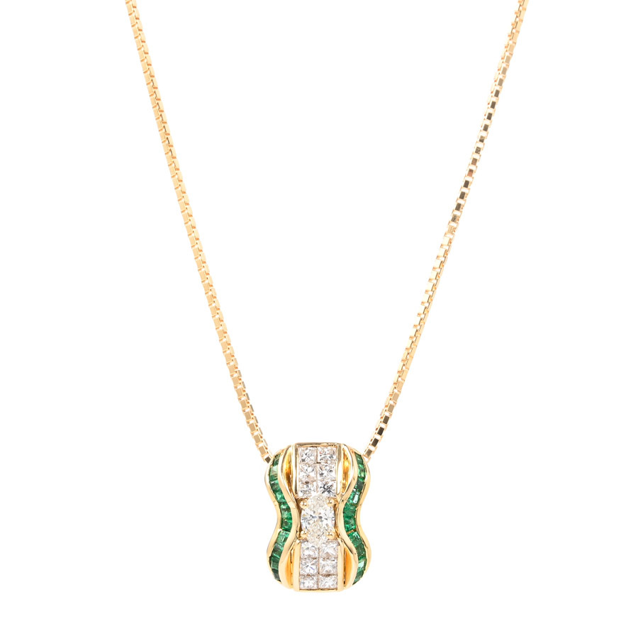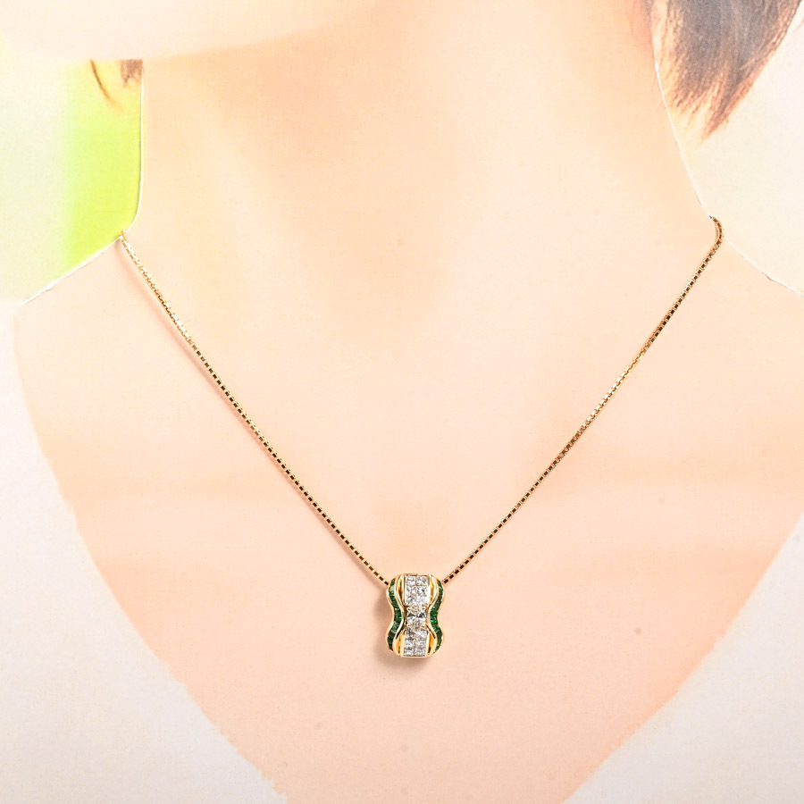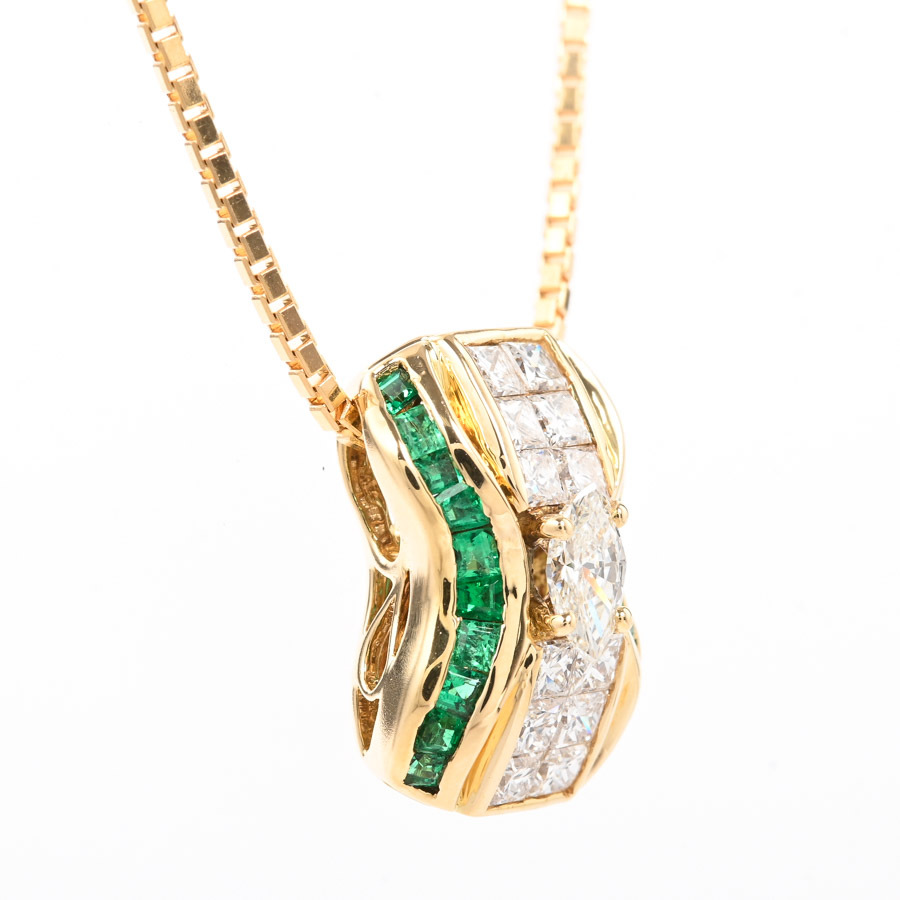 ダイヤ ネックレス ダイヤ0.24ct ダイヤ0.61ct エメラルド0.39ct 9.0g レディース 中古A品