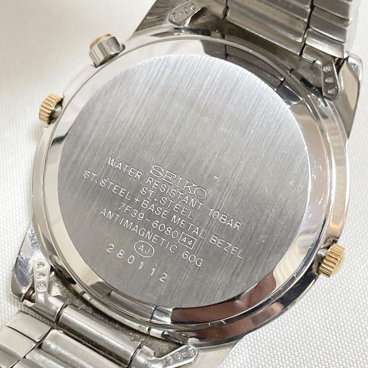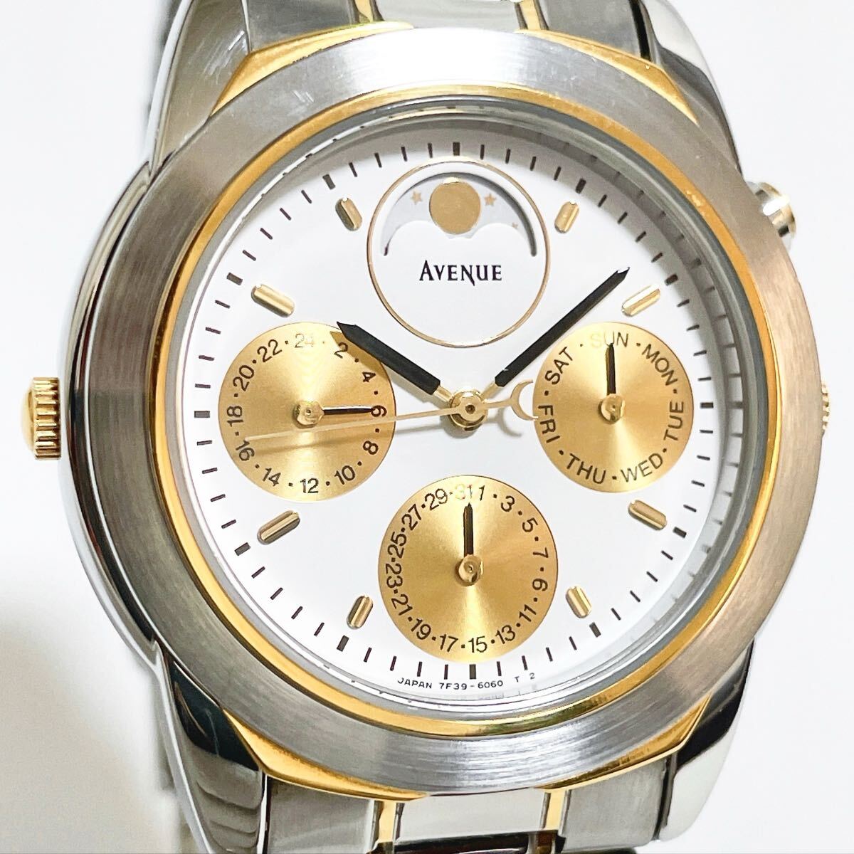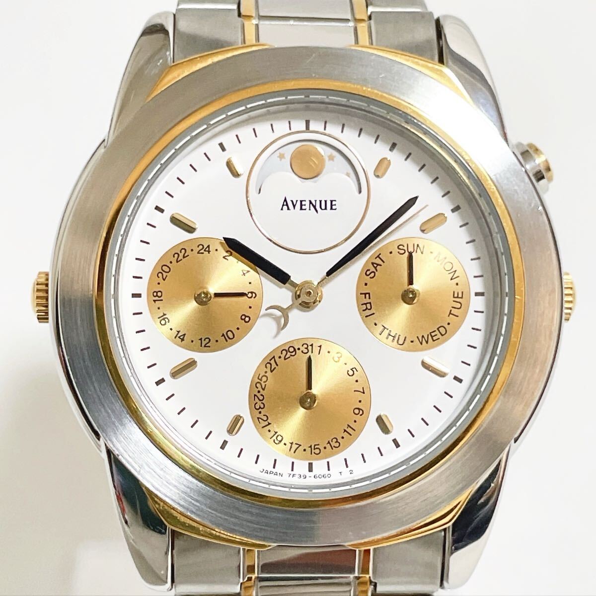 稼働品 SEIKO セイコー AVENUE アベニュー 7F39-6080トリプルカレンダー ムーンフェイズ 白文字盤 QZ メンズ腕時計 希少