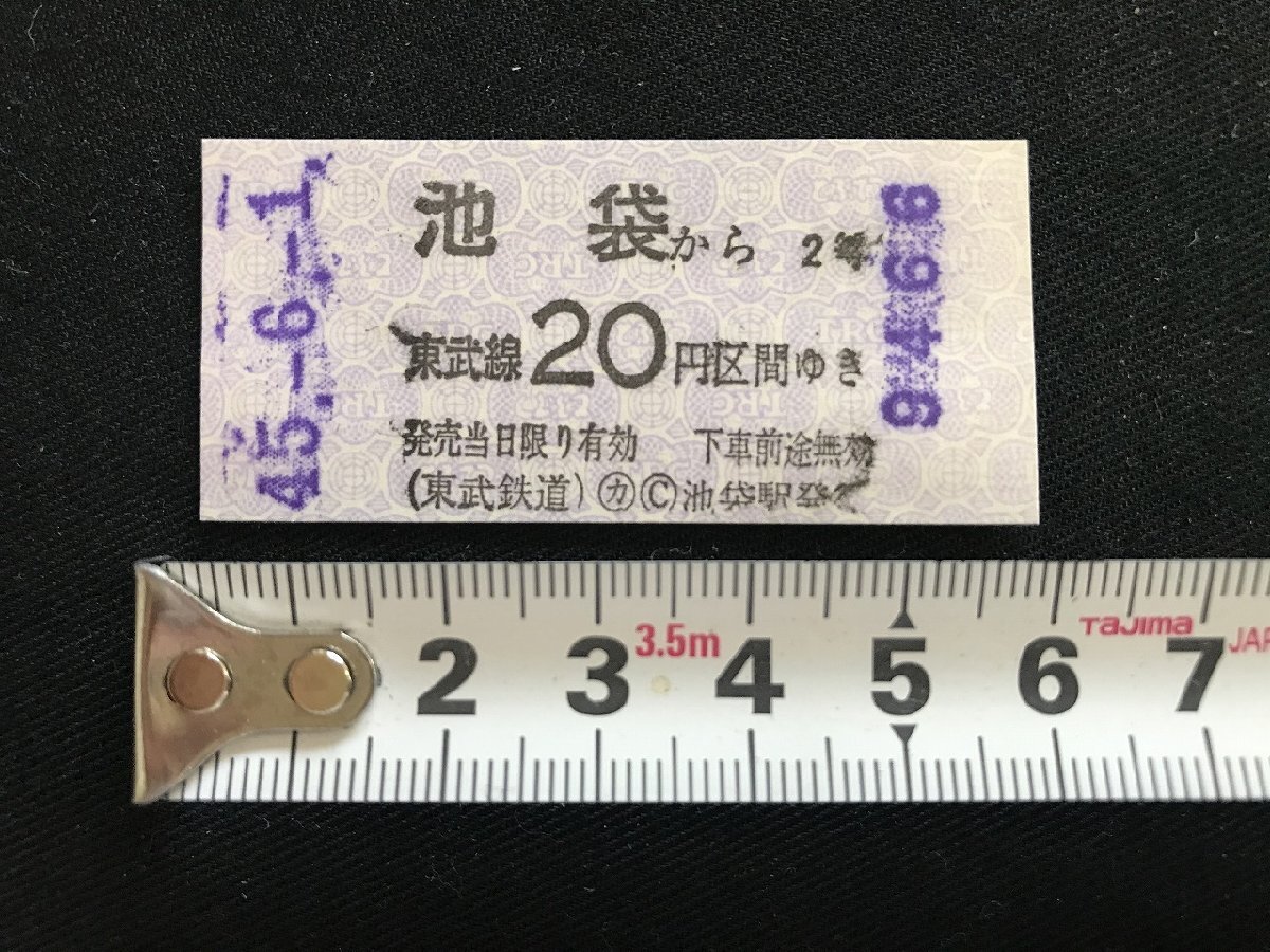 i☆* 古い切符 昭和45.6.1 東武鉄道 池袋から東武線20円区間 2等 池袋駅発行 乗車券 軟券 1点 145/C05