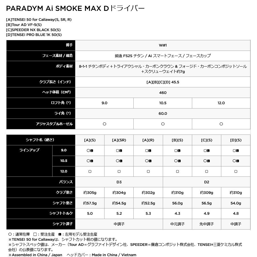 新品 2024 PARADYM Ai SMOKE MAX D 10.5° 純正カーボン TENSEI 50 for Callaway (SR) 日本仕様 パラダイムAiスモーク マックスD |