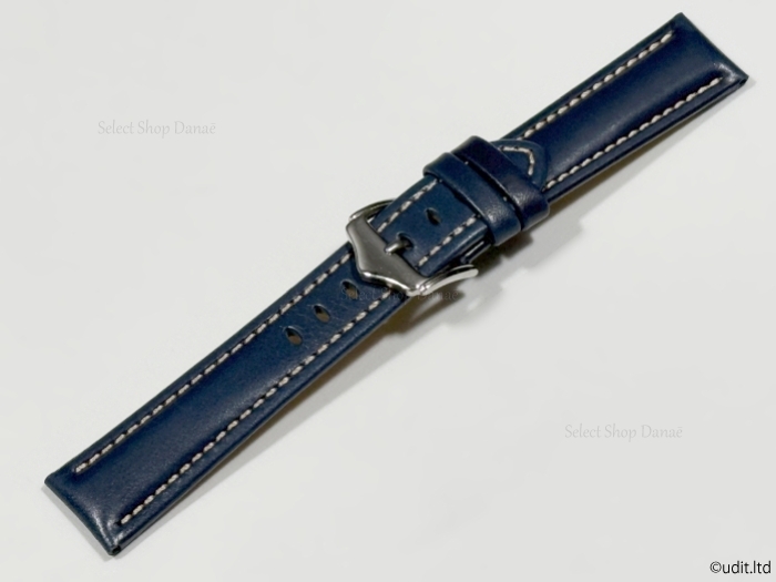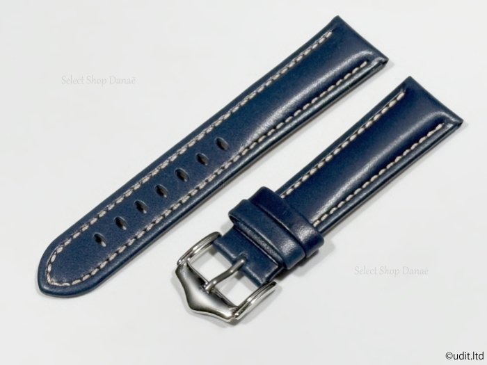 ラグ幅20mm コードバン 本革 腕時計レザーベルト ブルー シルバー尾錠 時計用バンド 腕時計ベルト LB101