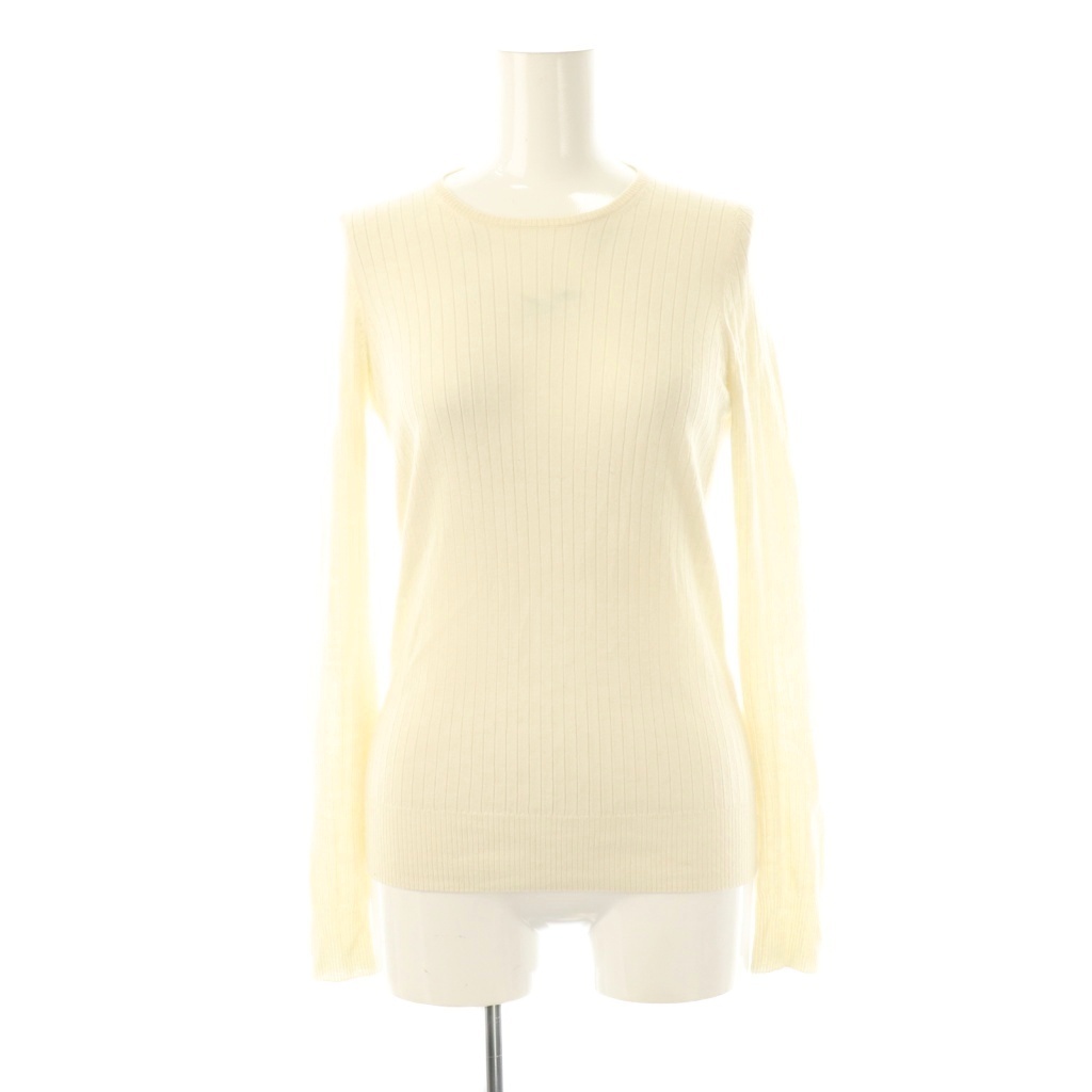 ドゥロワー Drawer 18G カシミヤシルク混リブクルーネックニット プルオーバー 1 オフホワイト /DF ■OS ■SH レディース