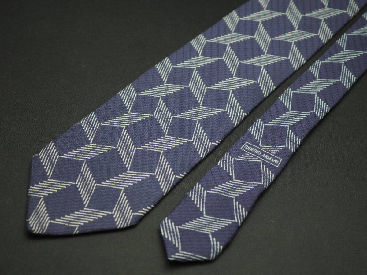 美品【GIORGIO ARMANI ジョルジオアルマーニ】 F2237 ネイビー系 SILK ブランド ネクタイ 古着 良品 転売 仕入