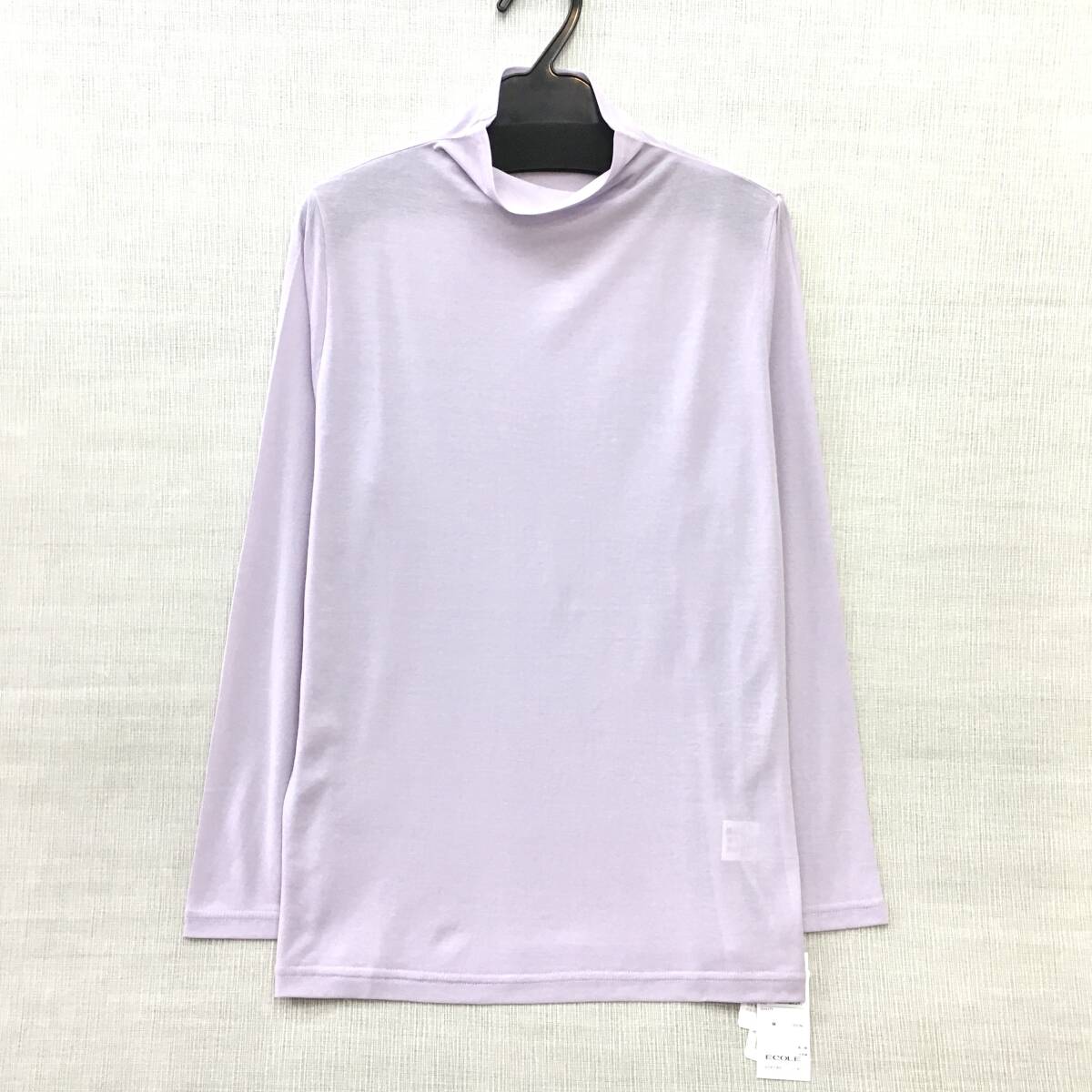 【新品】日本製 綿100% 極薄手 長袖 カットソー M-Lサイズ 送料無料 薄フジ色 サラサラ 高伸縮素材 シアーSZ天竺 婦人 日清紡 ハイネック