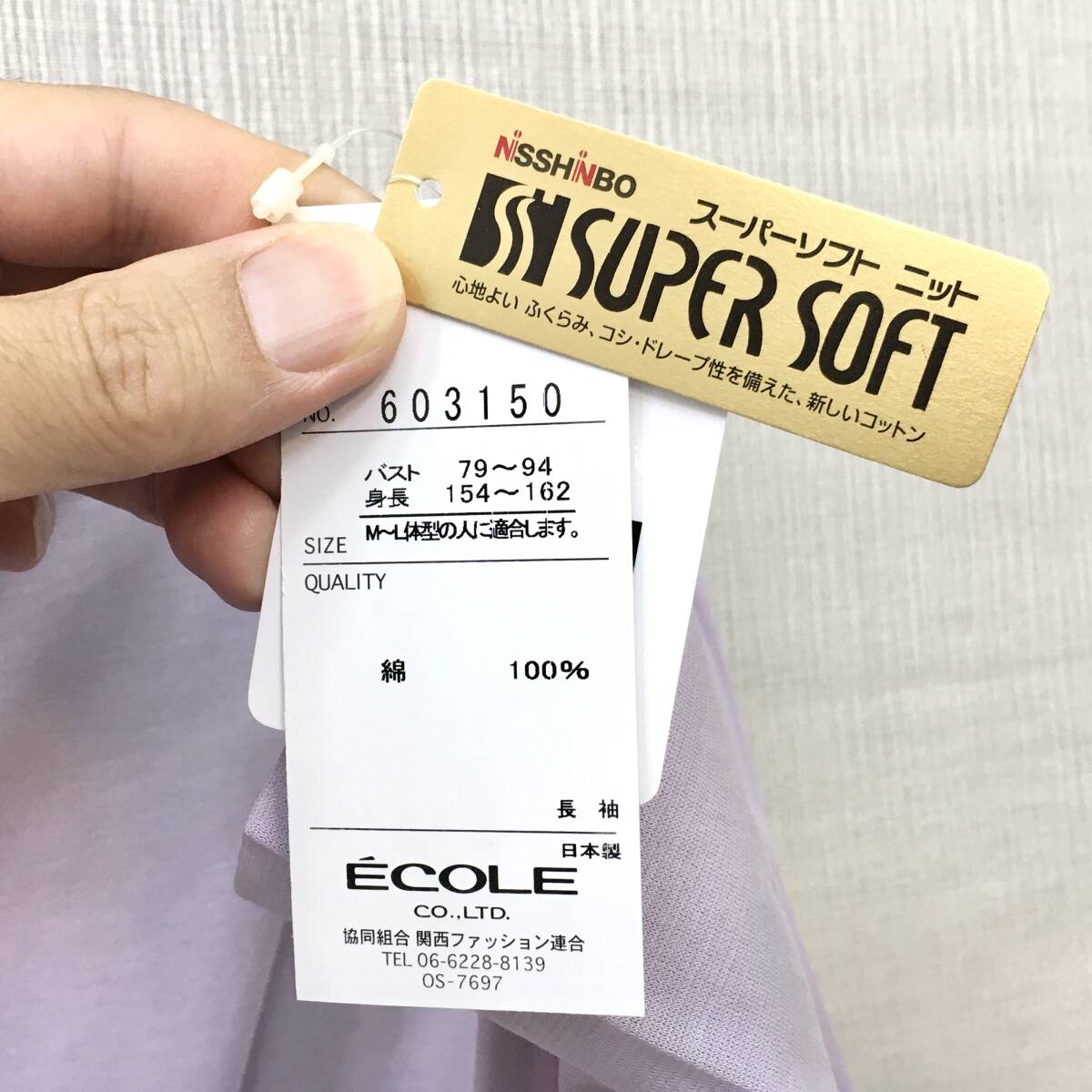 【新品】日本製 綿100% 極薄手 長袖 カットソー M-Lサイズ 送料無料 サラサラ 高伸縮素材 シアーSZ天竺 婦人 日清紡 ハイネック