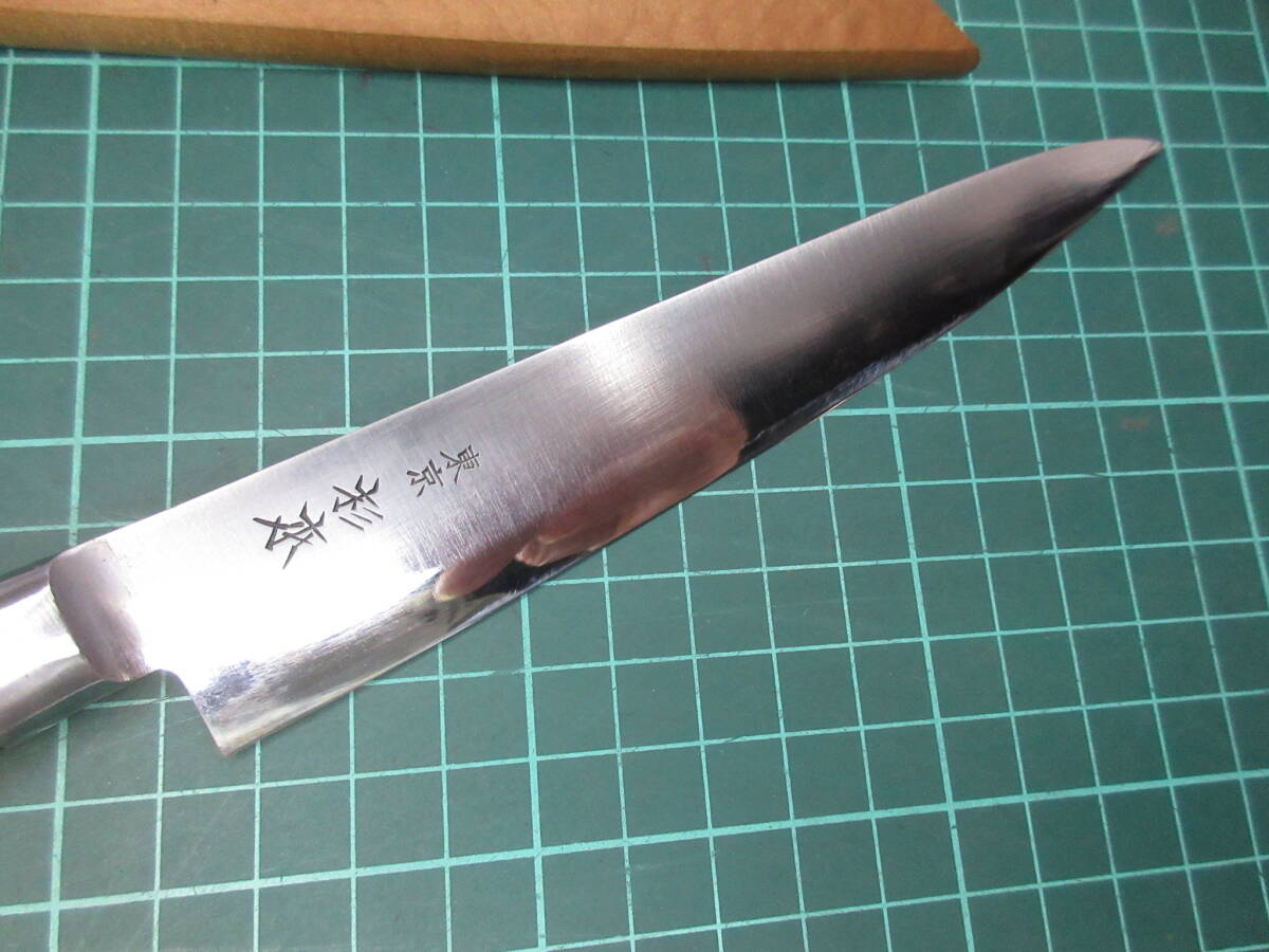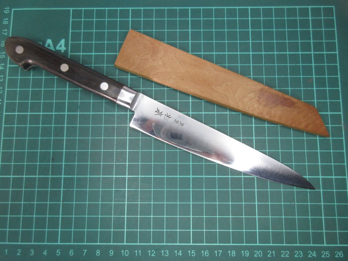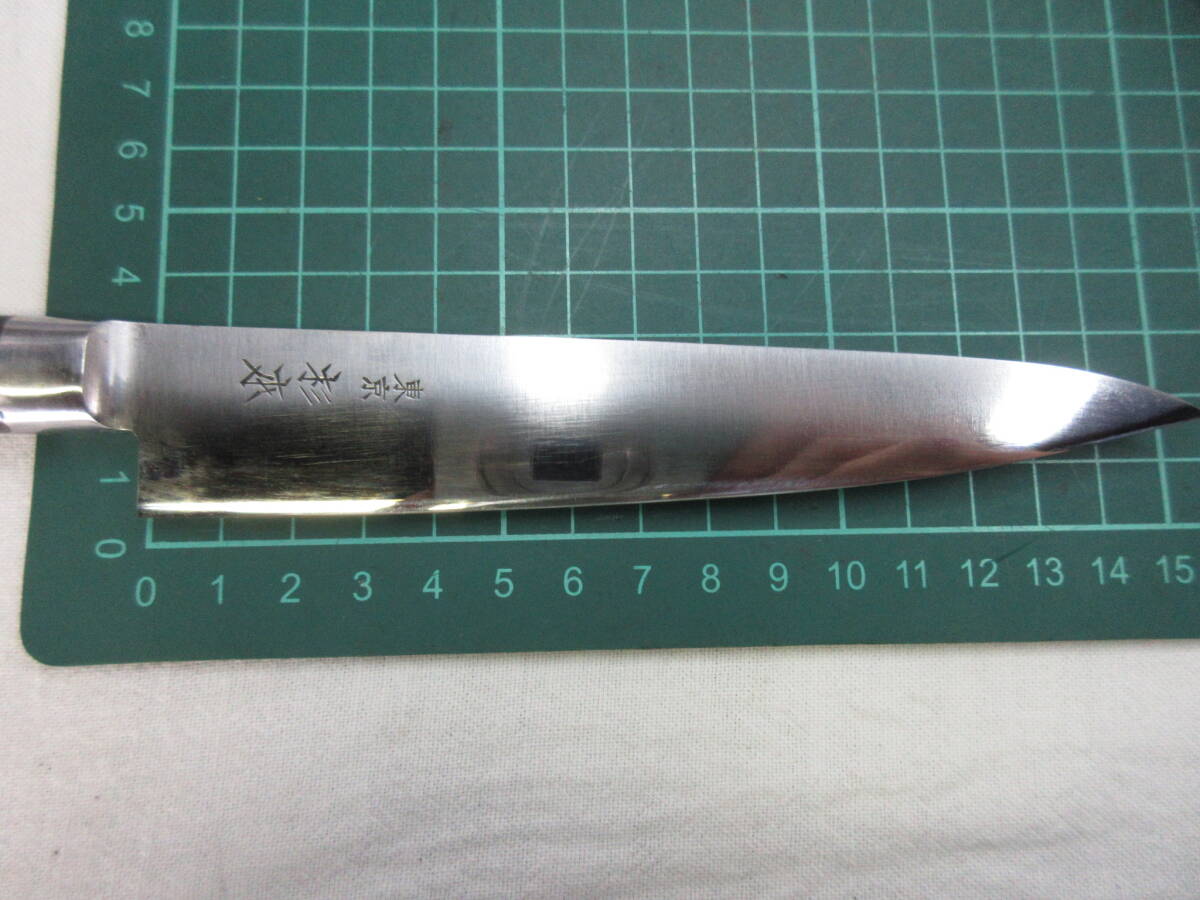 | 「受取連絡」が出来ない方の入札はお断りします。 こちらから評価を入れることはありません。 ■■■■■■■■■■■■■■■■■■■■■■■■■■■■■■■■■ ペティナイフ15cm 全鋼で直ぐ錆びます。両刃、鞘付き。錆痕が残っています。 最後の写真は磨き前です。 歪みや反り、落としきれない錆があります。全体的に使用感があります。 包丁のみの出品です、付属品はありません。 ■■■■■■■■■■■■■■■■■■■■■■■■■■■■■■■■■ 発送はレターパックです。(補償はありませんのでご注意ください。) 送料を抑えたい方はライト(430円)を選択してください。(ただし厚さ制限のため簡易包装です、新聞紙で包む程度ですので輸送時の衝撃で包丁の歪みや破損のリスクがありますのでご理解ください。) プラス(600円)は衝撃対策で厚めの梱包をします。(複数同梱の場合は包装が簡易になります。) 刃渡り21cmまではレターパックで発送できると思いますが長い刃は着払いゆうパックになります。 小振りな包丁なら3本くらいまでライトで同梱できます。プラスなら5本までは入ると思いますが21cm以上の包丁が絡むと本数が限られます。 以下は定型文です。 洋包丁は両刃、和包丁は片刃を前提に出品しています。 (タイトルと個別情報に刃付けの記載が無ければ上記のとおりです) 他の出品物と同梱できます。(システム上、着払いとのまとめ依頼ができません。落札後に同梱希望のメッセージを 頂ければ対応します。) 送料と材質についての質問には返答しません。 包丁につきましては全てジャンクとし、ノークレームノーリターンでお願いします。 出品からお品物が届くまでに時間が掛かった場合、鋼などの材質ですと変色や錆などの変質がある場合がございますのでご了承ください。 錆の酷い包丁は再生研磨していますが、あくまで素人仕事です。電動工具を用いての仕上げです。 削る、磨くは出来ますが歪みの修正は出来ません。中古品ですので歪みがある前提で入札してください。 磨きにより錆に強くなるメリットがありますが切った食材が張り付くデメリットがあります。 切れ味が悪いや、思ったより汚いなどのクレームはご遠慮ください。 触れば怪我をするほどの最低限の刃付けはしてあります、開封時にご注意ください。 肉眼での検品ですので微細な傷や欠けを見落としている可能性もありますので写真を参照してください。 現状維持のために防錆に椿油を塗布していることがありますので写真に不自然な艶が写っている時があります、ご了承ください。 (鋼の洋包丁の場合は中子にも塗布するために柄にも油が散布しています。ご使用前に洗浄してください。) 中子やリベットの錆を落とす為に柄ごと研磨する場合がありますので、柄に研磨痕が残っている時があります。 柄の仕上げに軽く蝋引きしています。 片刃の場合、研ぎですが砥石傷が付くのを嫌ってベタ研ぎはせず、峰をわずかに浮かして仕上げています。(綺麗な裏押しの和包丁はベタ研ぎです) 10対0ではなく9対1位の感覚です、完璧な片刃をお求めの方は入札をご遠慮ください。 (和包丁は片刃前提です、洋包丁が片刃の場合にはタイトルと個別情報に片刃と記載してあります) 有効利用、再生利用できる方の入札をおまちしています。 写真で判断いただき、商品説明を理解出来る方のみ入札をお願いします。 クリーニングなどはせず、写真のままお送りします。 専門知識が乏しい為、質問に答えられない時があります。 ブランド品の真偽については不明とさせて頂きます。 素人による中古出品です、すり替え防止の為にもノークレームノーリターンでお願いします。 入金を確認しました時点でお取り置き終了と判断し発送準備にはいります。 同梱発送、お取り置きを希望の方は入金前に連絡頂くと助かります。 落札後、48時間以内の初回連絡、五日以内の入金が確認出来ません場合は落札者様都合のキャンセルとさせて頂きます。 その場合落札者様に非常に悪い評価とブラックリストへの登録を同時に行いますのでご了承ください。 (以後こちらのオークションに入札が出来なくなります) #お取引に不安を感じる評価の方は削除させて頂く事があります。 #総合評価が高くても直近に悪い評価がある方も削除致します。 #いたずら入札を防ぐ為、1万円以上の入札額時の場合は新規の方の入札をお断りします。 #(どうしても入札したい時は質問欄より入札意思をお伝えください。) *評価を入れて頂くと反射的にお返しする形を取っています、不要の方は評価を入れないで下さい。 *こちらから評価をお付けすることはありません、不要の方は「受取連絡」で終了して下さい。 自己紹介欄もあわせてお読みください。 | ||