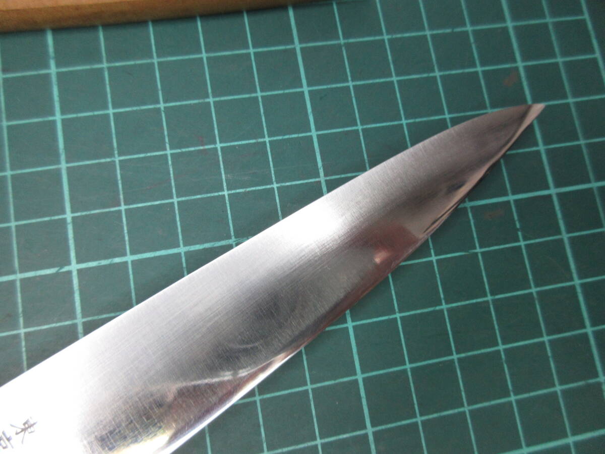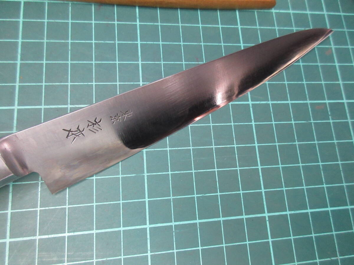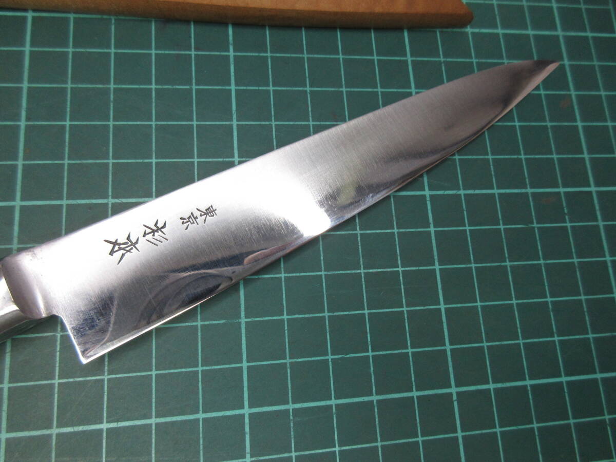 | 「受取連絡」が出来ない方の入札はお断りします。 こちらから評価を入れることはありません。 ■■■■■■■■■■■■■■■■■■■■■■■■■■■■■■■■■ ペティナイフ15cm 全鋼で直ぐ錆びます。両刃、鞘付き。錆痕が残っています。 最後の写真は磨き前です。 歪みや反り、落としきれない錆があります。全体的に使用感があります。 包丁のみの出品です、付属品はありません。 ■■■■■■■■■■■■■■■■■■■■■■■■■■■■■■■■■ 発送はレターパックです。(補償はありませんのでご注意ください。) 送料を抑えたい方はライト(430円)を選択してください。(ただし厚さ制限のため簡易包装です、新聞紙で包む程度ですので輸送時の衝撃で包丁の歪みや破損のリスクがありますのでご理解ください。) プラス(600円)は衝撃対策で厚めの梱包をします。(複数同梱の場合は包装が簡易になります。) 刃渡り21cmまではレターパックで発送できると思いますが長い刃は着払いゆうパックになります。 小振りな包丁なら3本くらいまでライトで同梱できます。プラスなら5本までは入ると思いますが21cm以上の包丁が絡むと本数が限られます。 以下は定型文です。 洋包丁は両刃、和包丁は片刃を前提に出品しています。 (タイトルと個別情報に刃付けの記載が無ければ上記のとおりです) 他の出品物と同梱できます。(システム上、着払いとのまとめ依頼ができません。落札後に同梱希望のメッセージを 頂ければ対応します。) 送料と材質についての質問には返答しません。 包丁につきましては全てジャンクとし、ノークレームノーリターンでお願いします。 出品からお品物が届くまでに時間が掛かった場合、鋼などの材質ですと変色や錆などの変質がある場合がございますのでご了承ください。 錆の酷い包丁は再生研磨していますが、あくまで素人仕事です。電動工具を用いての仕上げです。 削る、磨くは出来ますが歪みの修正は出来ません。中古品ですので歪みがある前提で入札してください。 磨きにより錆に強くなるメリットがありますが切った食材が張り付くデメリットがあります。 切れ味が悪いや、思ったより汚いなどのクレームはご遠慮ください。 触れば怪我をするほどの最低限の刃付けはしてあります、開封時にご注意ください。 肉眼での検品ですので微細な傷や欠けを見落としている可能性もありますので写真を参照してください。 現状維持のために防錆に椿油を塗布していることがありますので写真に不自然な艶が写っている時があります、ご了承ください。 (鋼の洋包丁の場合は中子にも塗布するために柄にも油が散布しています。ご使用前に洗浄してください。) 中子やリベットの錆を落とす為に柄ごと研磨する場合がありますので、柄に研磨痕が残っている時があります。 柄の仕上げに軽く蝋引きしています。 片刃の場合、研ぎですが砥石傷が付くのを嫌ってベタ研ぎはせず、峰をわずかに浮かして仕上げています。(綺麗な裏押しの和包丁はベタ研ぎです) 10対0ではなく9対1位の感覚です、完璧な片刃をお求めの方は入札をご遠慮ください。 (和包丁は片刃前提です、洋包丁が片刃の場合にはタイトルと個別情報に片刃と記載してあります) 有効利用、再生利用できる方の入札をおまちしています。 写真で判断いただき、商品説明を理解出来る方のみ入札をお願いします。 クリーニングなどはせず、写真のままお送りします。 専門知識が乏しい為、質問に答えられない時があります。 ブランド品の真偽については不明とさせて頂きます。 素人による中古出品です、すり替え防止の為にもノークレームノーリターンでお願いします。 入金を確認しました時点でお取り置き終了と判断し発送準備にはいります。 同梱発送、お取り置きを希望の方は入金前に連絡頂くと助かります。 落札後、48時間以内の初回連絡、五日以内の入金が確認出来ません場合は落札者様都合のキャンセルとさせて頂きます。 その場合落札者様に非常に悪い評価とブラックリストへの登録を同時に行いますのでご了承ください。 (以後こちらのオークションに入札が出来なくなります) #お取引に不安を感じる評価の方は削除させて頂く事があります。 #総合評価が高くても直近に悪い評価がある方も削除致します。 #いたずら入札を防ぐ為、1万円以上の入札額時の場合は新規の方の入札をお断りします。 #(どうしても入札したい時は質問欄より入札意思をお伝えください。) *評価を入れて頂くと反射的にお返しする形を取っています、不要の方は評価を入れないで下さい。 *こちらから評価をお付けすることはありません、不要の方は「受取連絡」で終了して下さい。 自己紹介欄もあわせてお読みください。 | ||