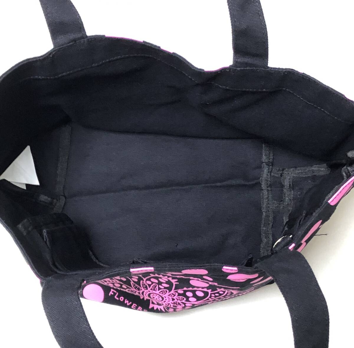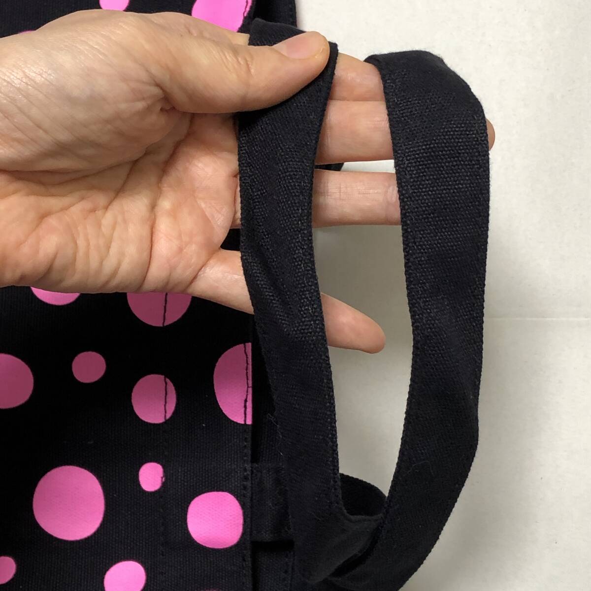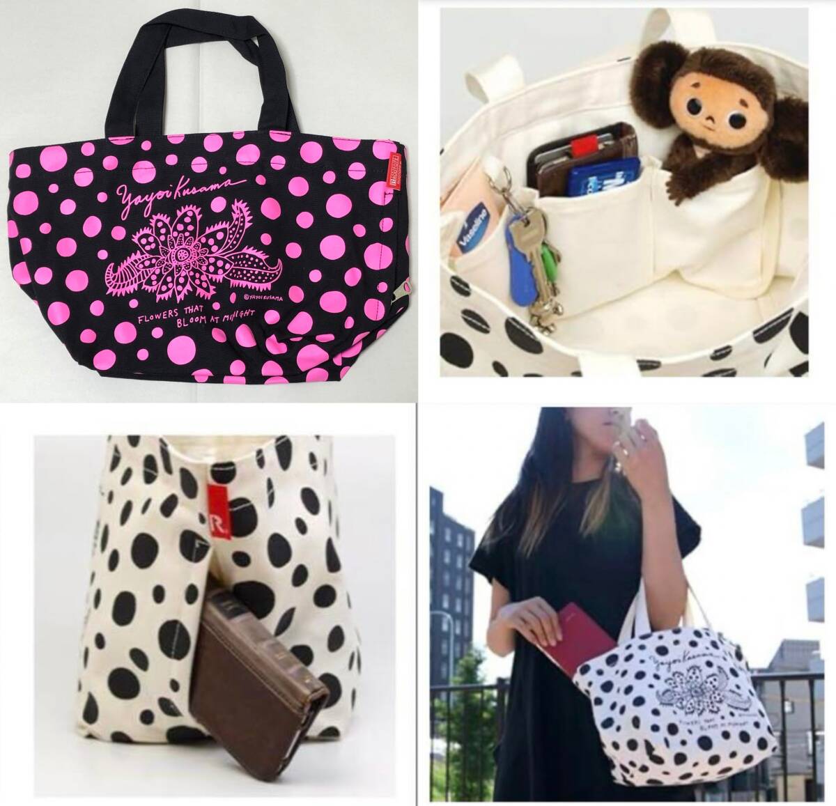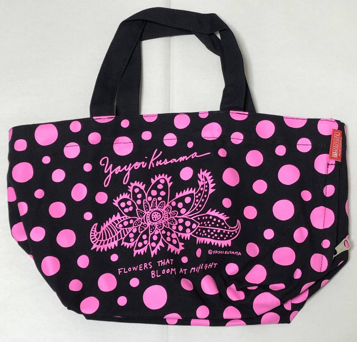 【美品】草間彌生 トートバッグ 真夜中に咲く花 ブラックxピンク ドット トート ミニトート ルートート
