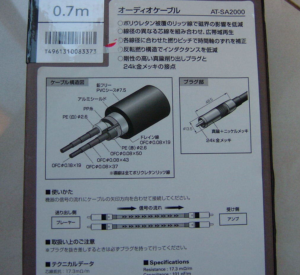 ■当時定価17500円 audio-technica オーディオケーブル AT-SA2000 0.7M LR2本組ペア RCAケーブルになります