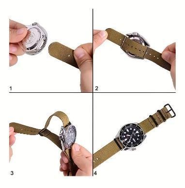 バネ棒は付属しませんが、ループ式(NATOタイプ)のため取り付けには必要です