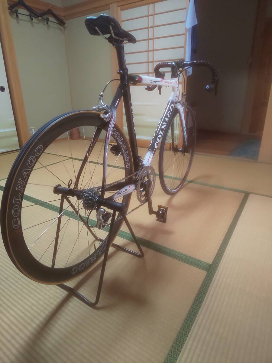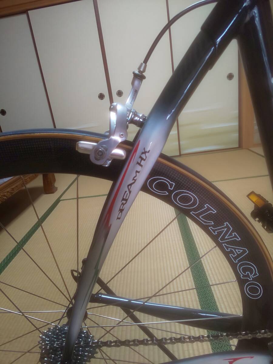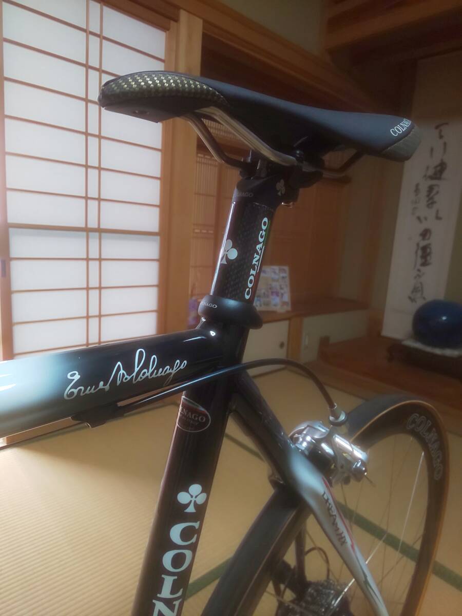 フロントホイールはカンパニョーロ、リアホイールはコルナゴ製のカーボンディープリムです。