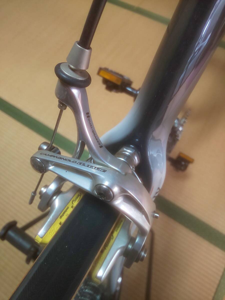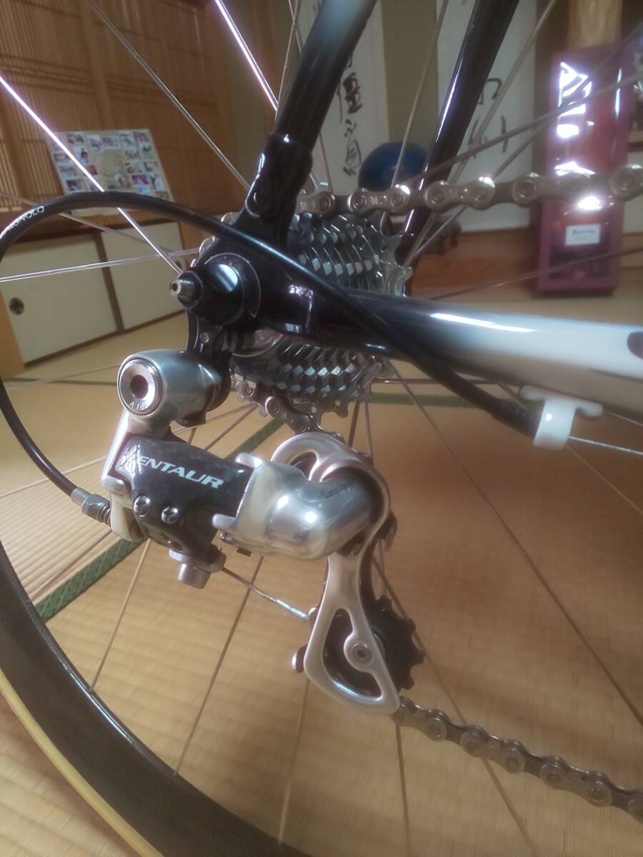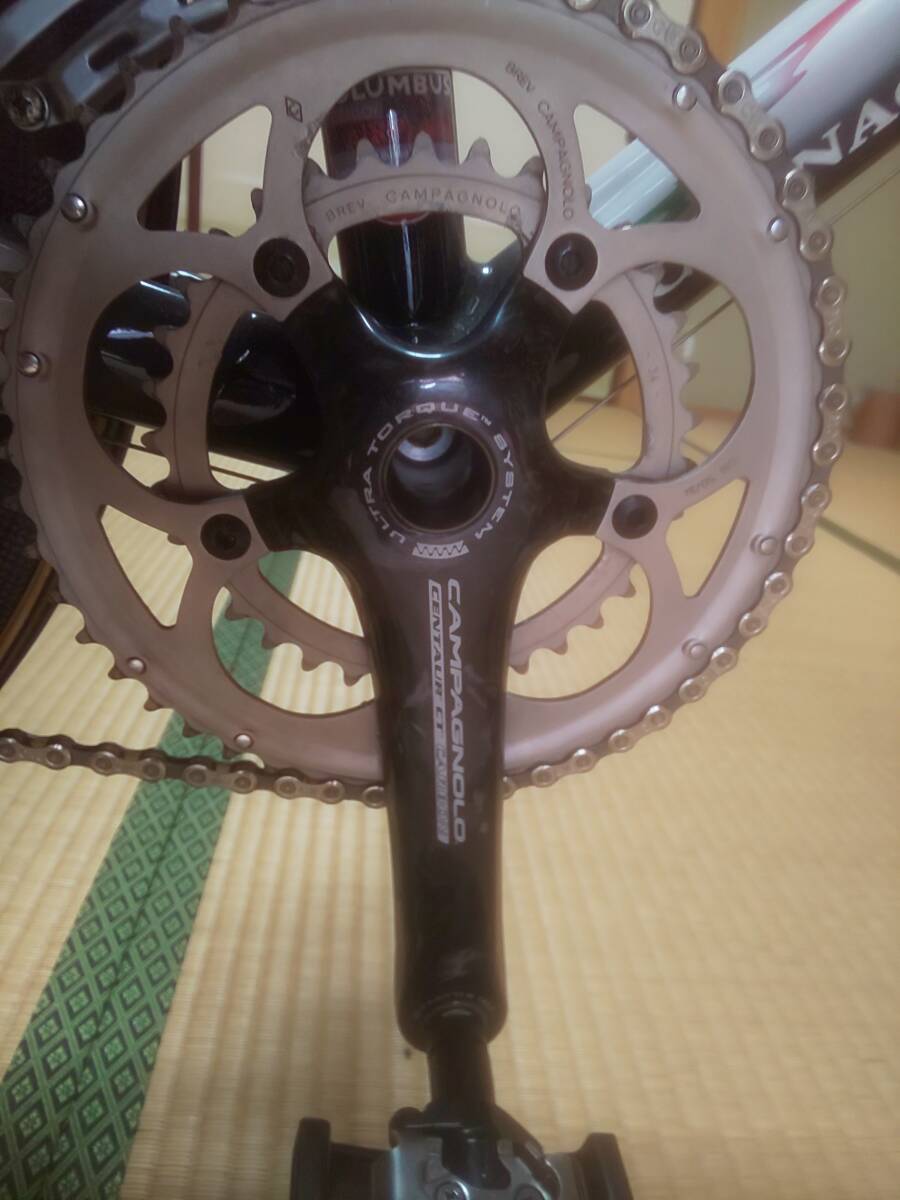 各パーツはカンパニョーロのケンタウルで駆動は10速となります。フロントギアの表面処理に数ヶ所の浮きがございます。