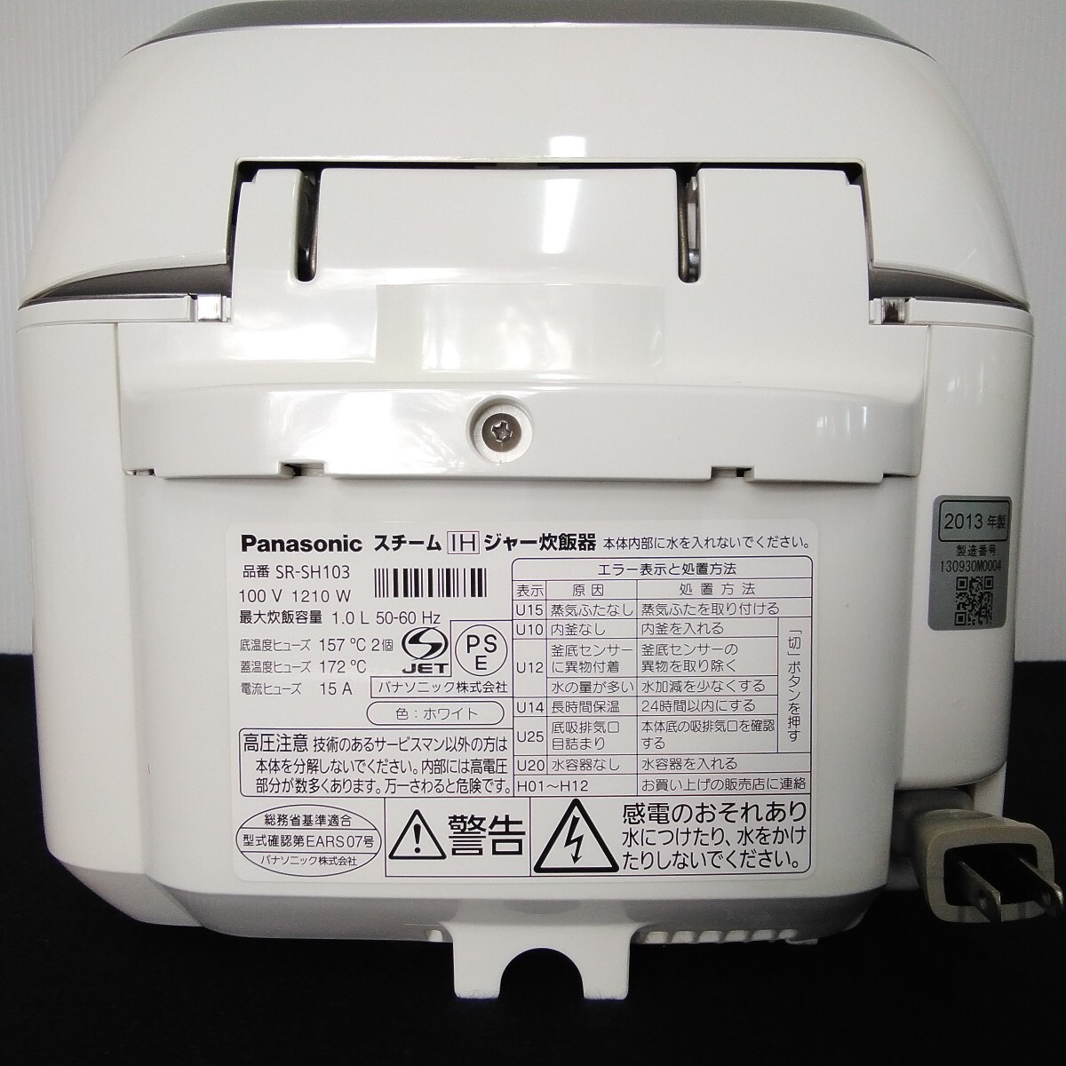 通電し炊飯ボタンを押すと熱を持つことまで確認しました。