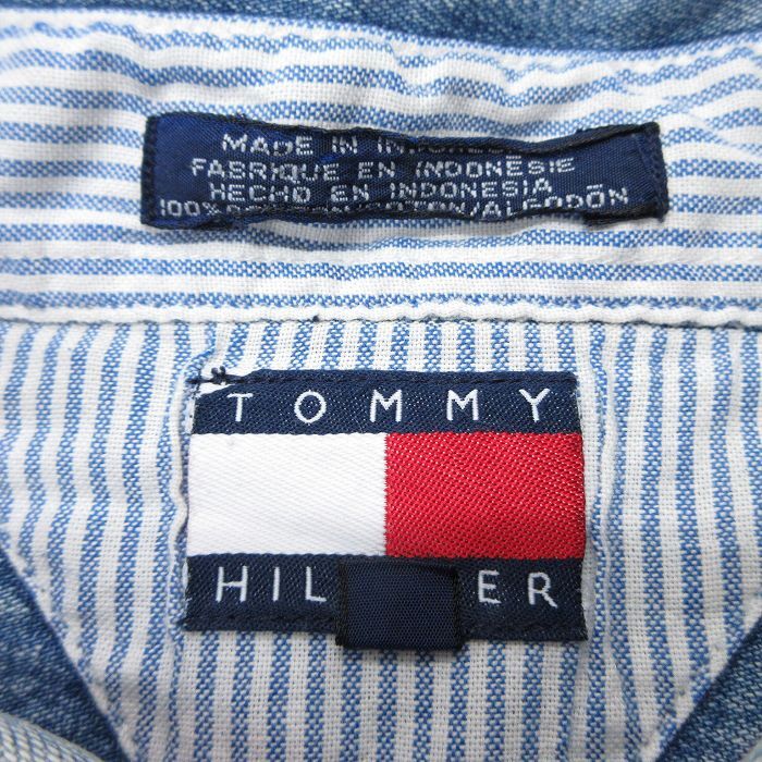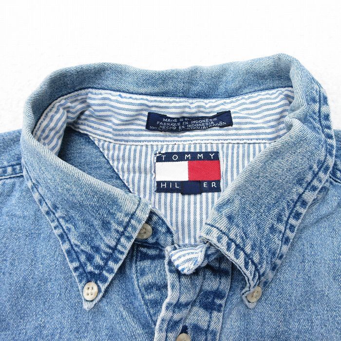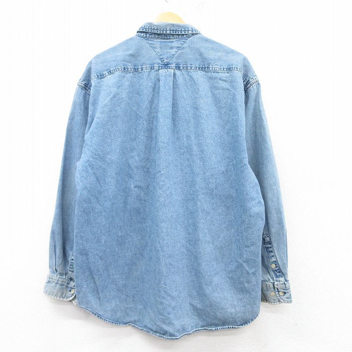 【商品名】 XL★古着 トミーヒルフィガー 長袖 ブランド シャツ メンズ 90年代 90s ワンポイントロゴ 大きいサイズ コットン ボタンダウン 紺 デニム【spe】