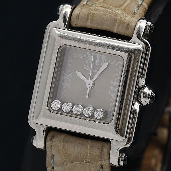 1円 稼働 ショパール ハッピースポーツ スクエアミニ 27/8892/23 QZ ブラウン文字盤 レディース腕時計 0243210 9GTT MST