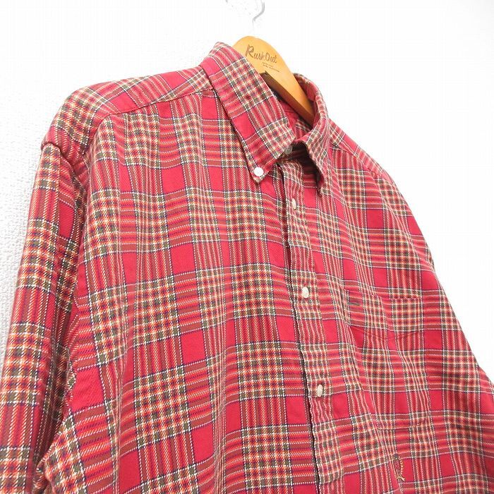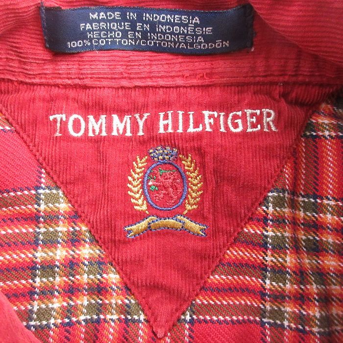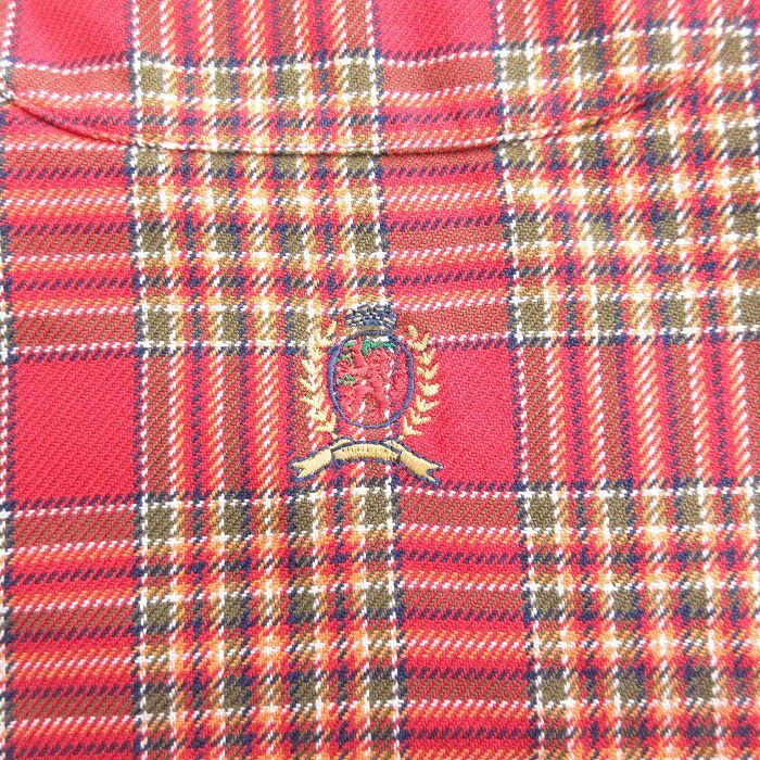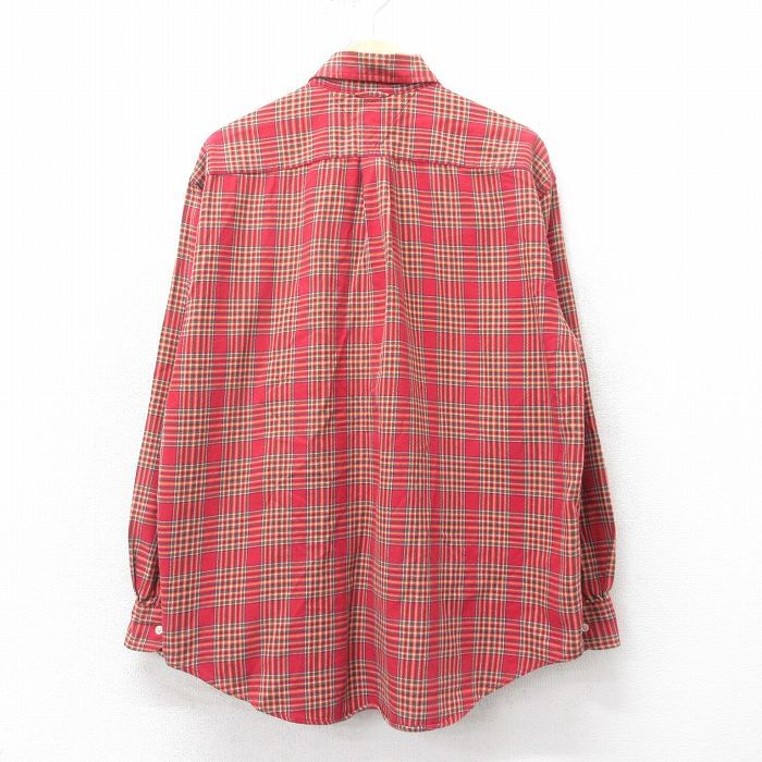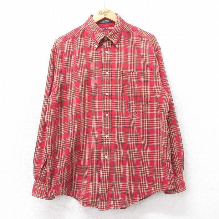 【商品名】 XL★古着 トミーヒルフィガー 長袖 ブランド シャツ メンズ 90年代 90s ワンポイントロゴ コットン ボタンダウン 赤他 チェック