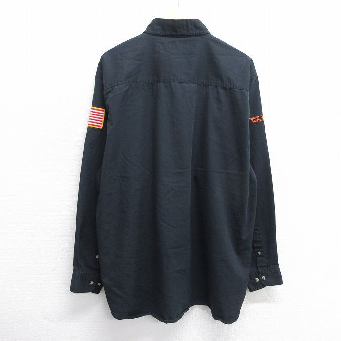 【商品名】 XL★古着 長袖 ワーク シャツ メンズ INTERMODAL 大きいサイズ ロング丈 ボタンダウン 黒