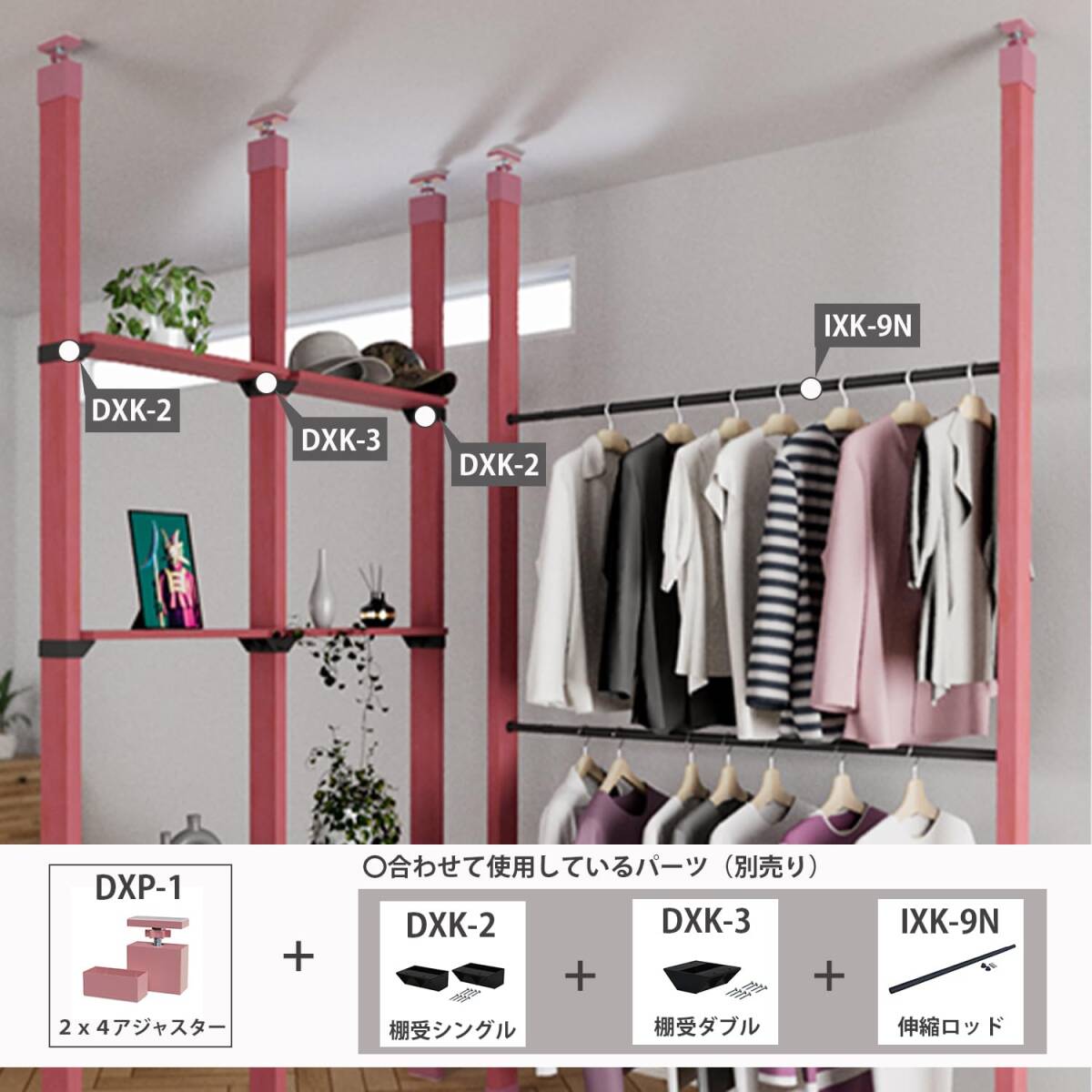 【セット内容】アジャスター 1セット、取扱説明書【使用荷重】20kg (柱一本当たり)【カラー】モーヴピンク