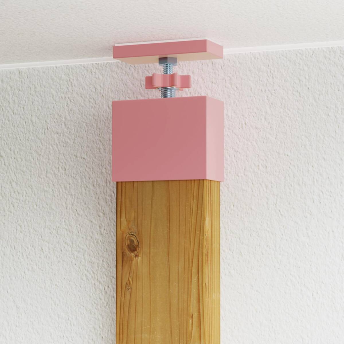 2×4木材を床と天井に突っ張り、DIYの基礎となる支柱をたてるためのアジャスター。ジャッキを回すだけで、2x4材をしっかり固定できます。