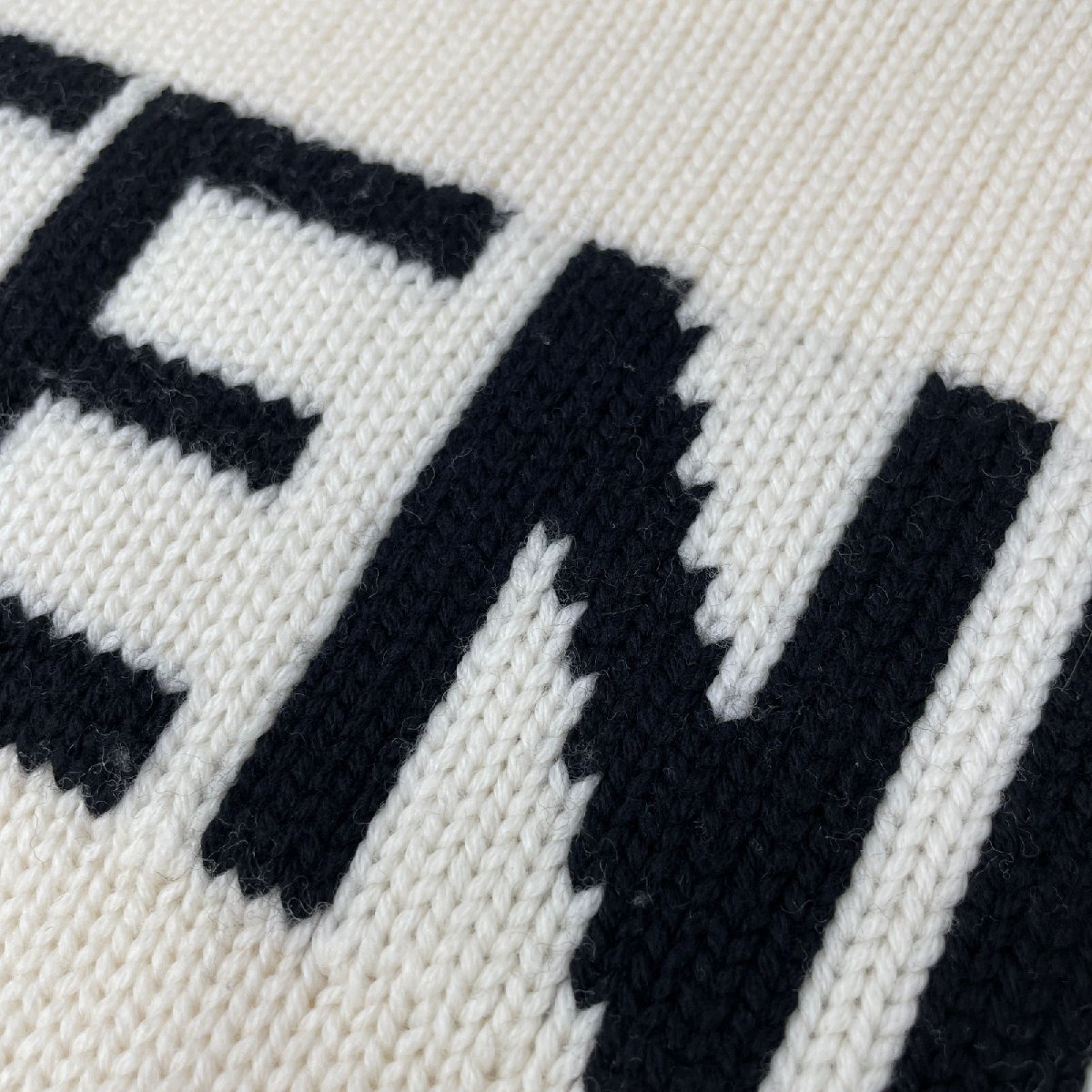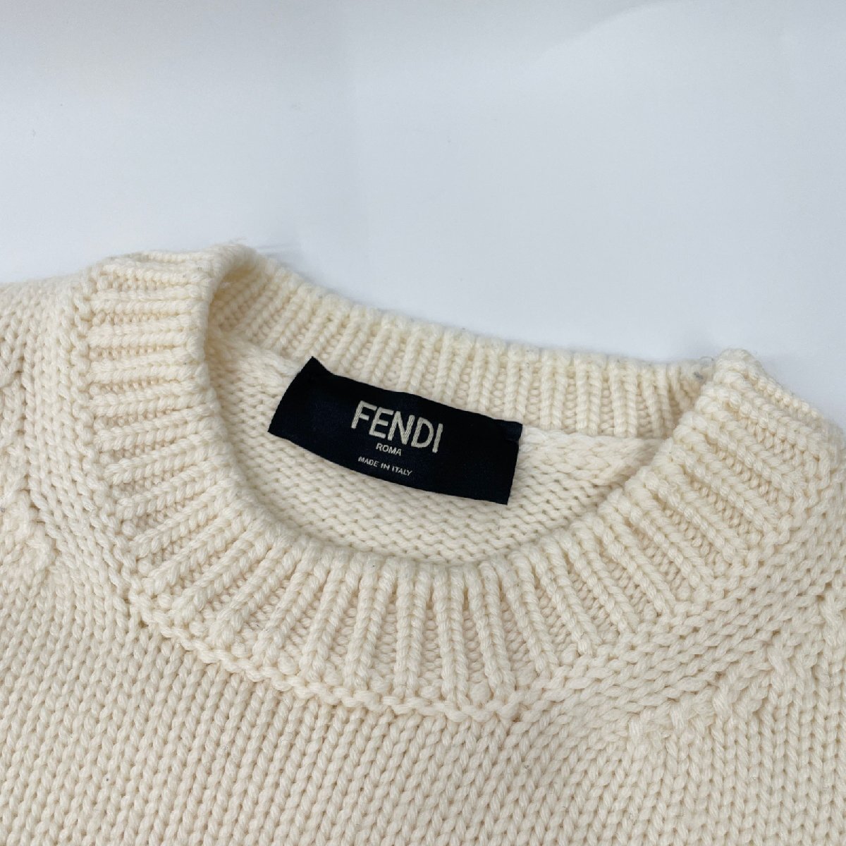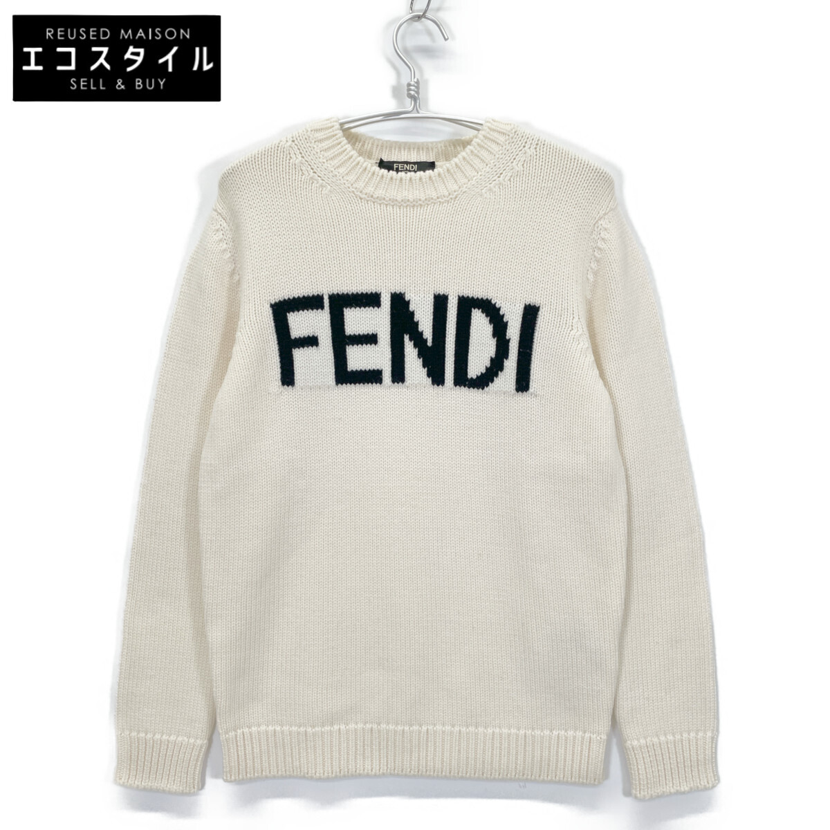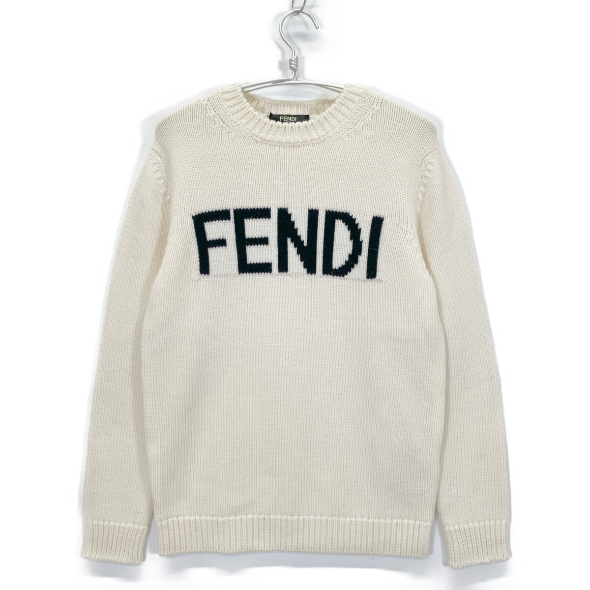 商品名 フェンディ FZZ387 A3M3 アイボリー×ブラック ウール フロントロゴ クルーネックニットプルオーバートップス