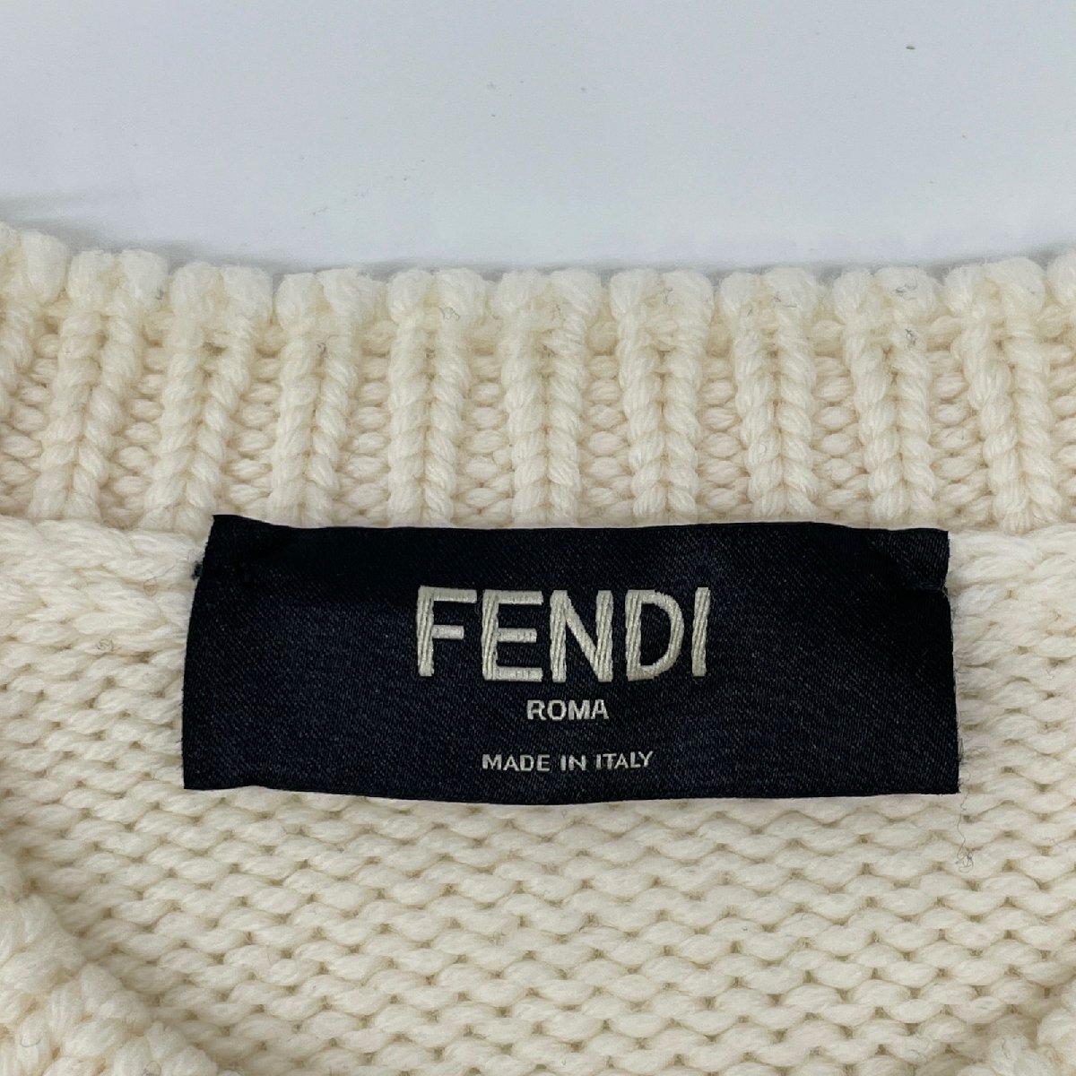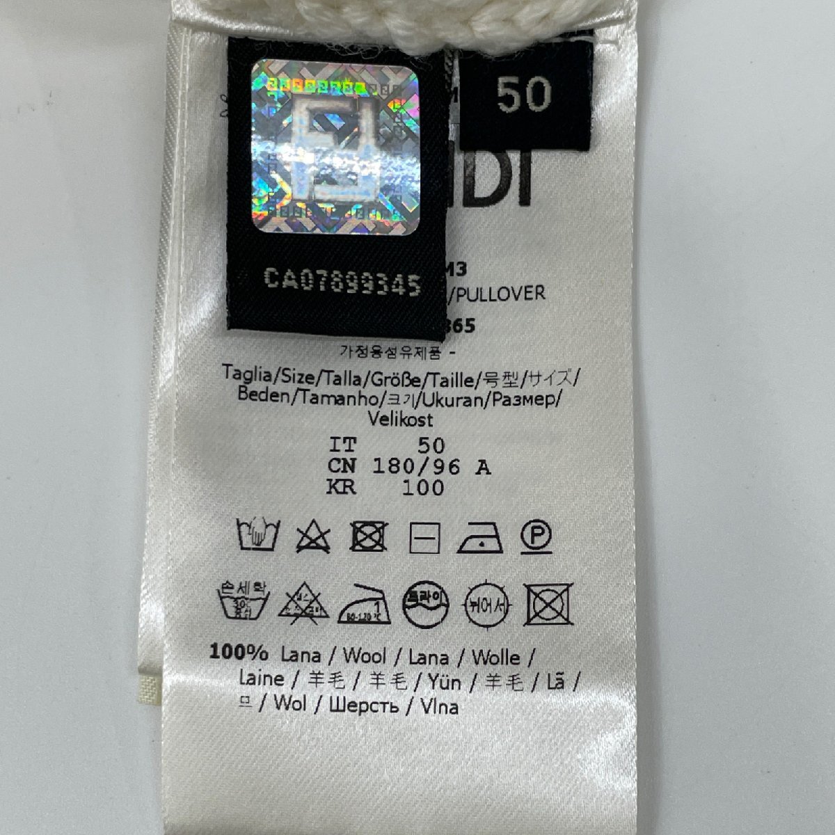 FENDI フェンディ FZZ387 A3M3 アイボリー×ブラック ウール フロントロゴ クルーネックニットプルオーバー 50 メンズ