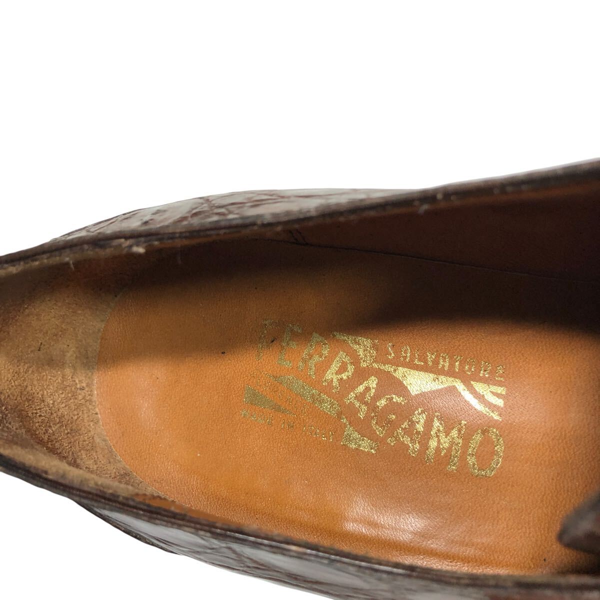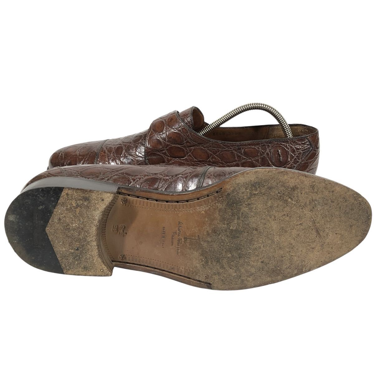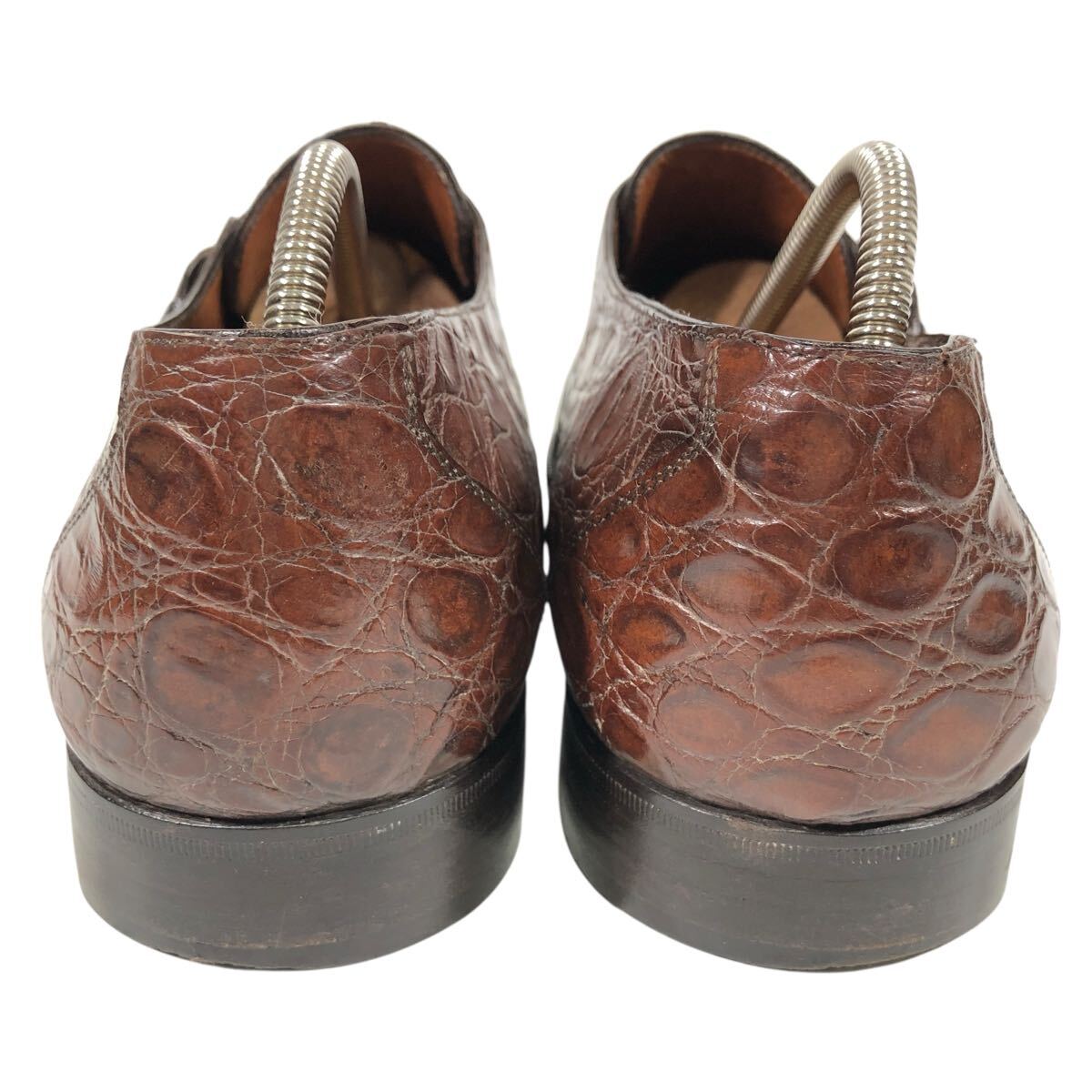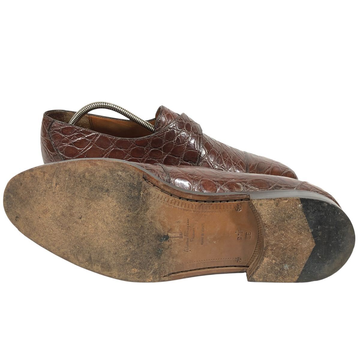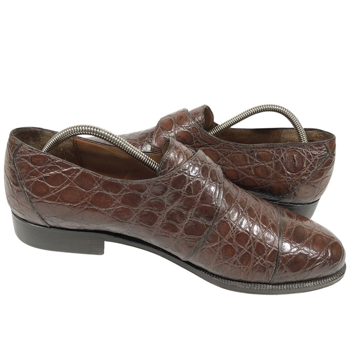 【フェラガモ】本物 Ferragamo 靴 26.5cm 総クロコダイル モンクストラップ ビジネスシューズ ワニ革 男性用 メンズ 伊製 8 1/2 EE