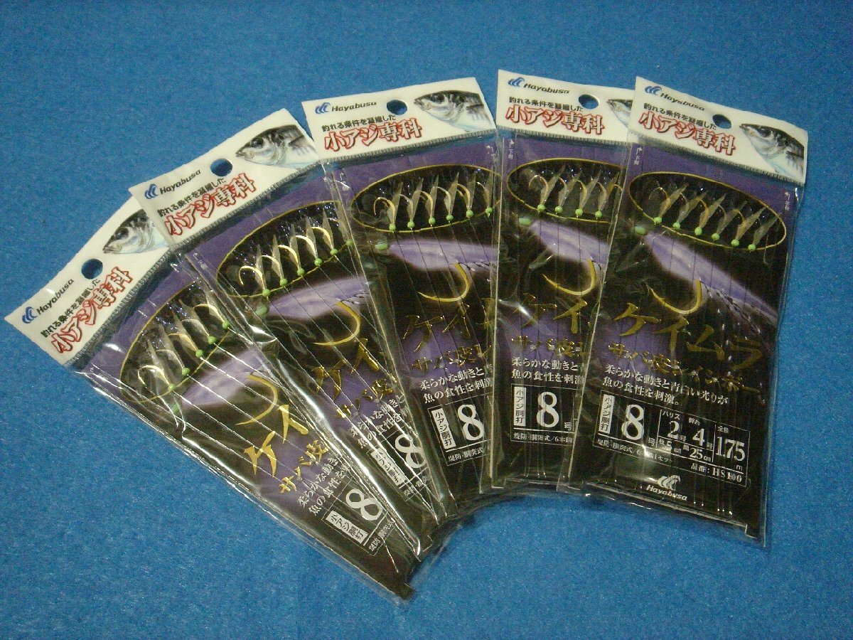 「ハヤブサ サビキ 小アジ専科 ケイムラサバ皮レインボー 8号」の5枚セットです。