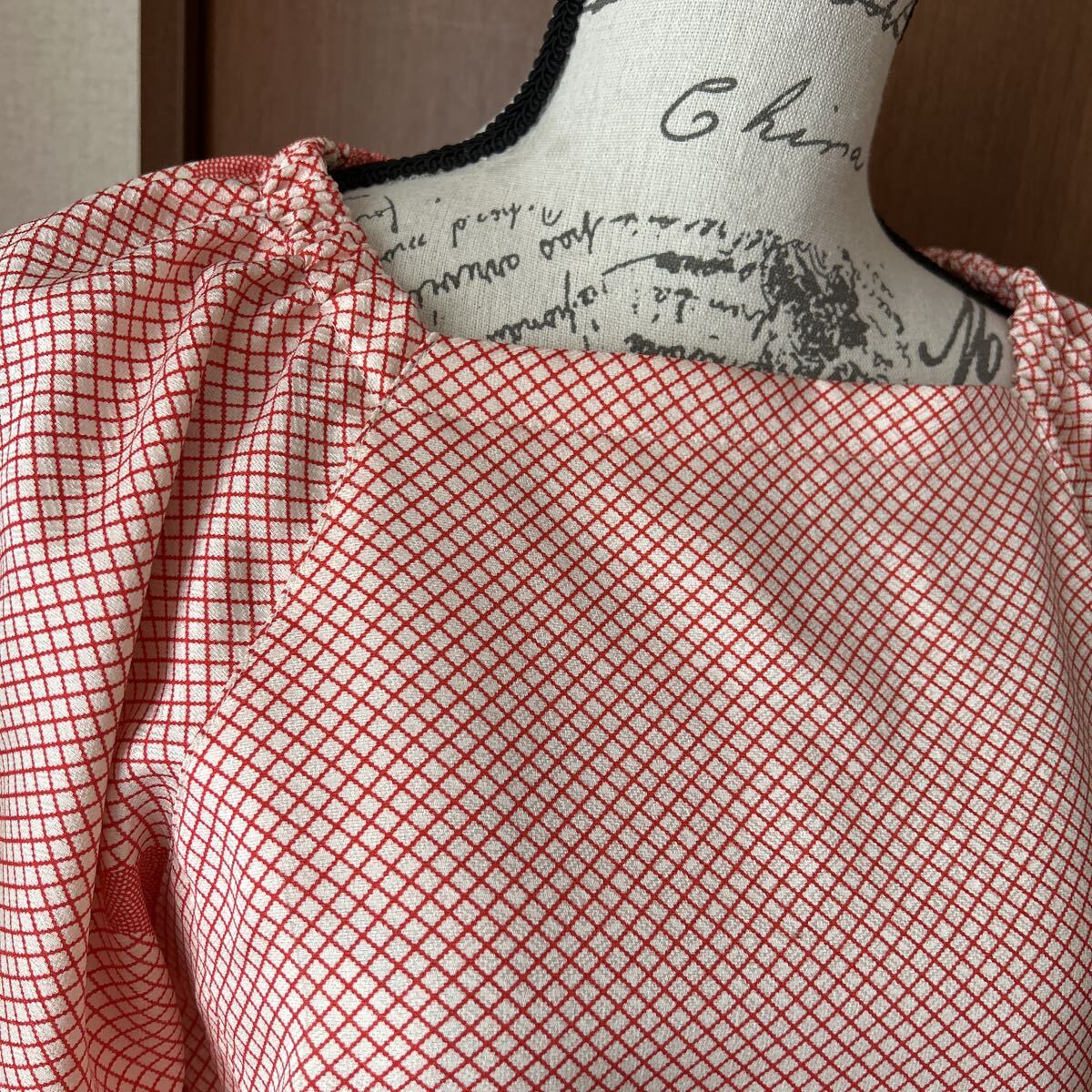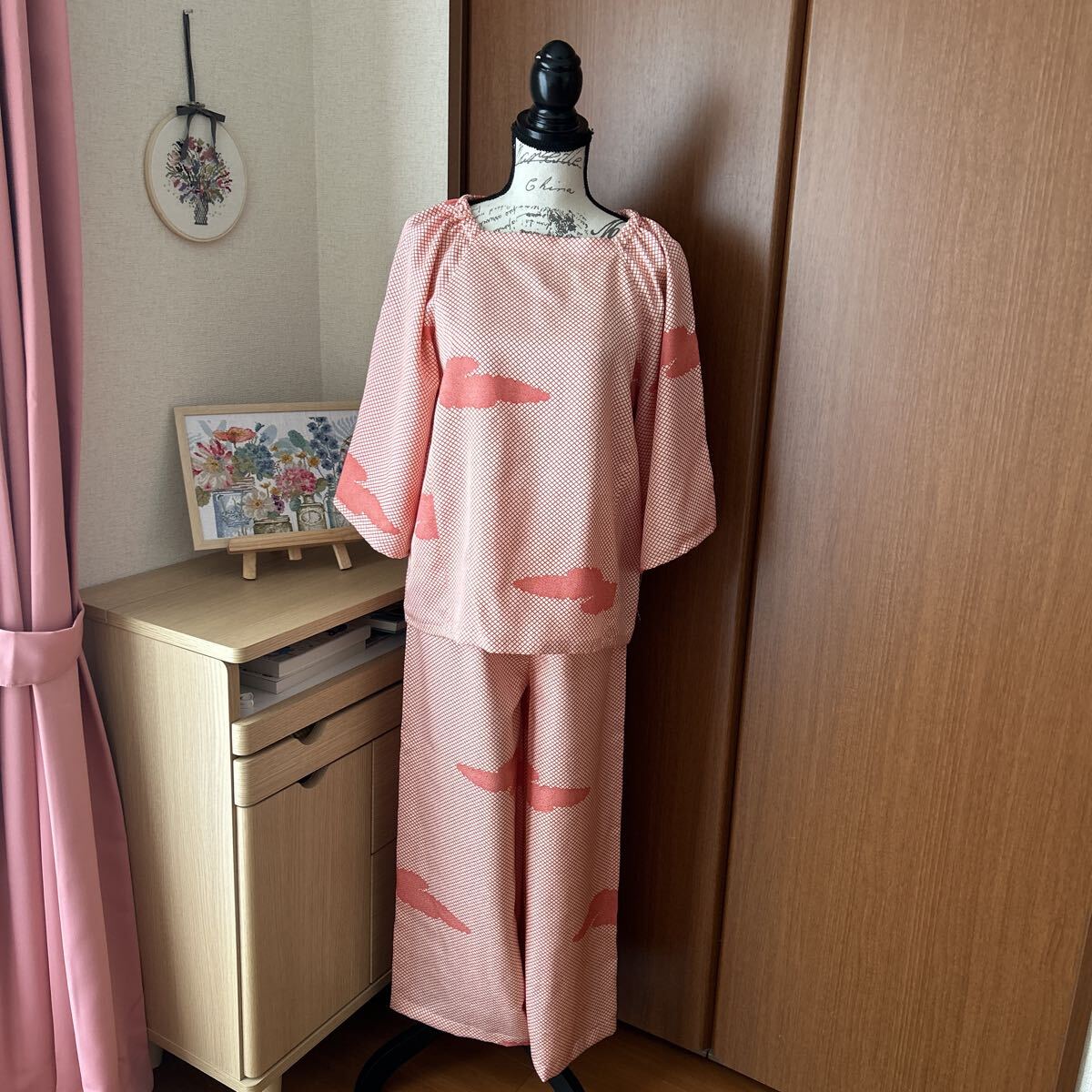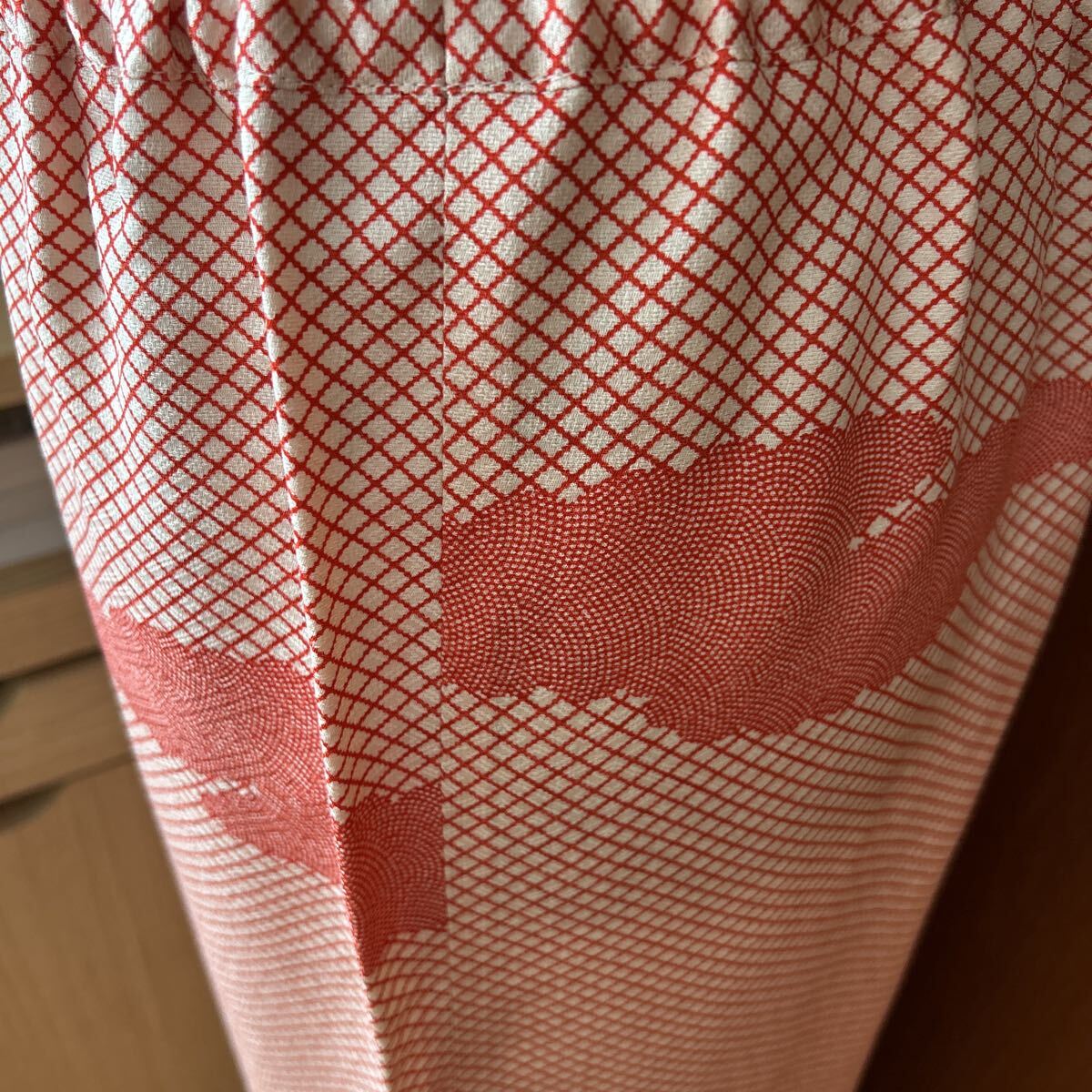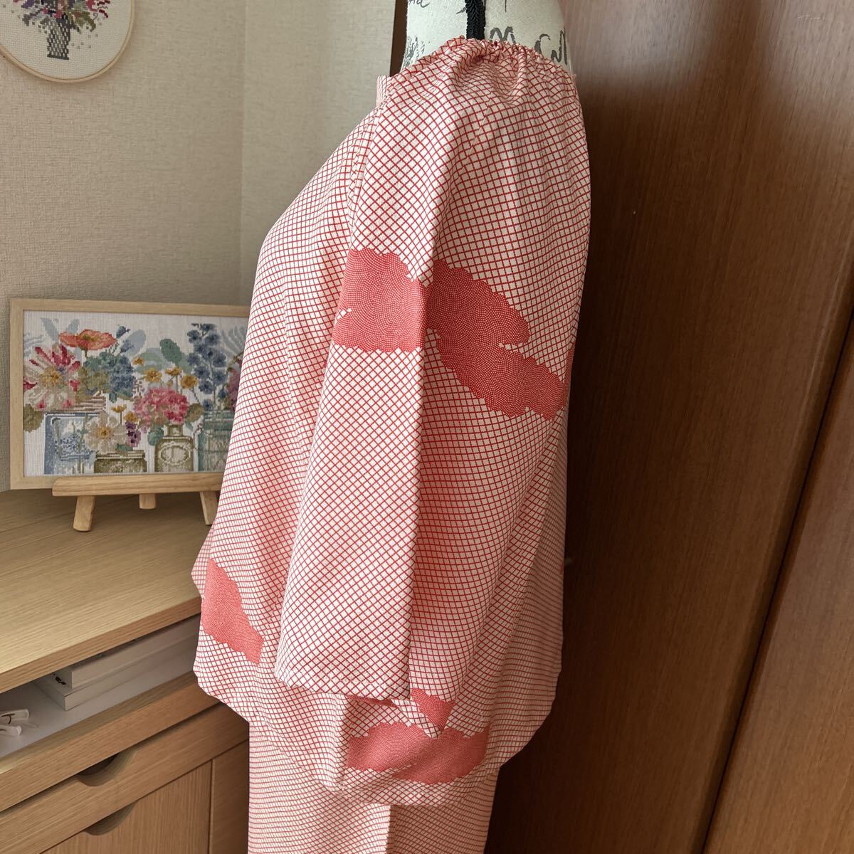 白地に赤の雲柄の小紋を解いてホームクリーニング後仕立てました。