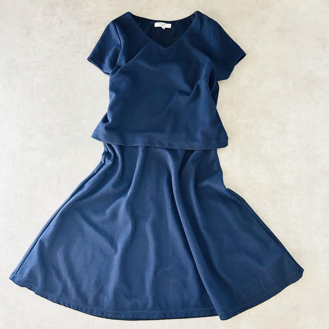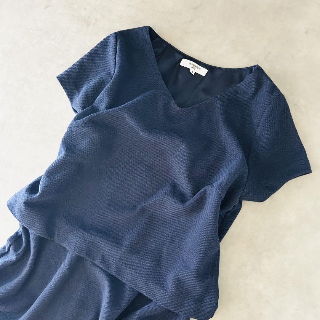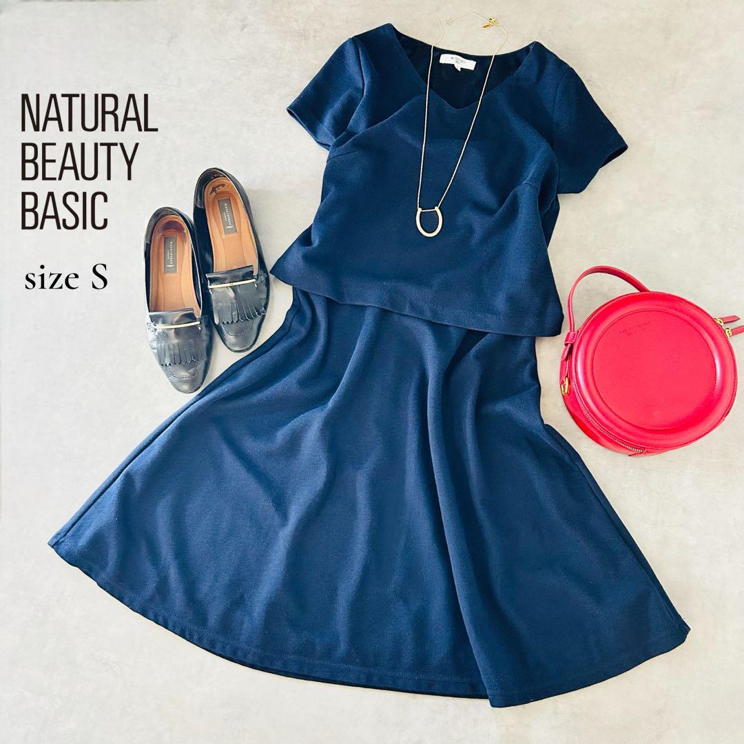NATURAL BEAUTY BASIC(ナチュラルビューティーベーシック)の、セットアップ風デザインがおしゃれなネイビーワンピースです。