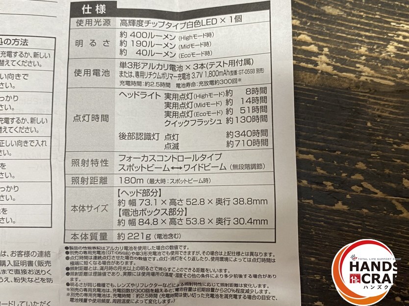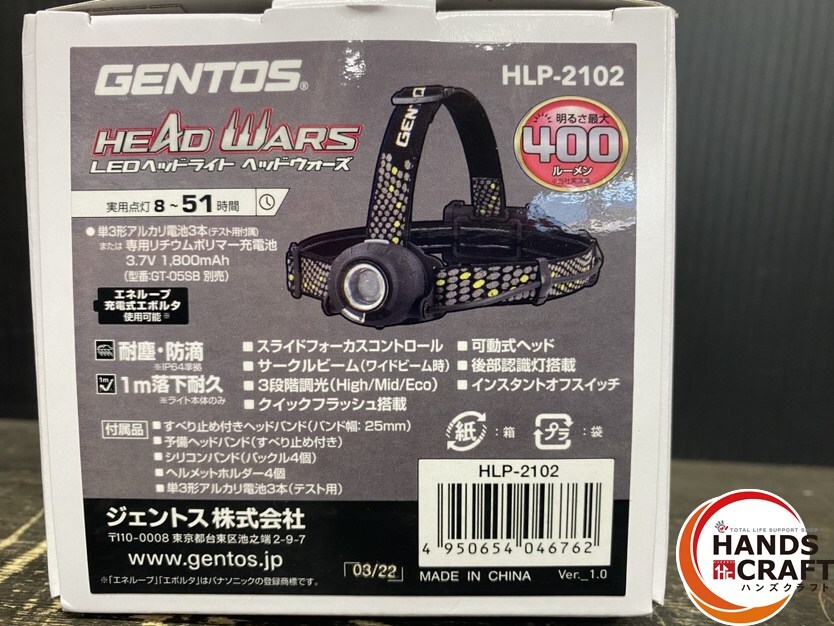 ●【未使用品】GENTOS ジェントス HLP-2102 LEDヘッドライト ヘッドウォーズ 最大400ルーメン 電源:単3形アルカリ乾電池×3本