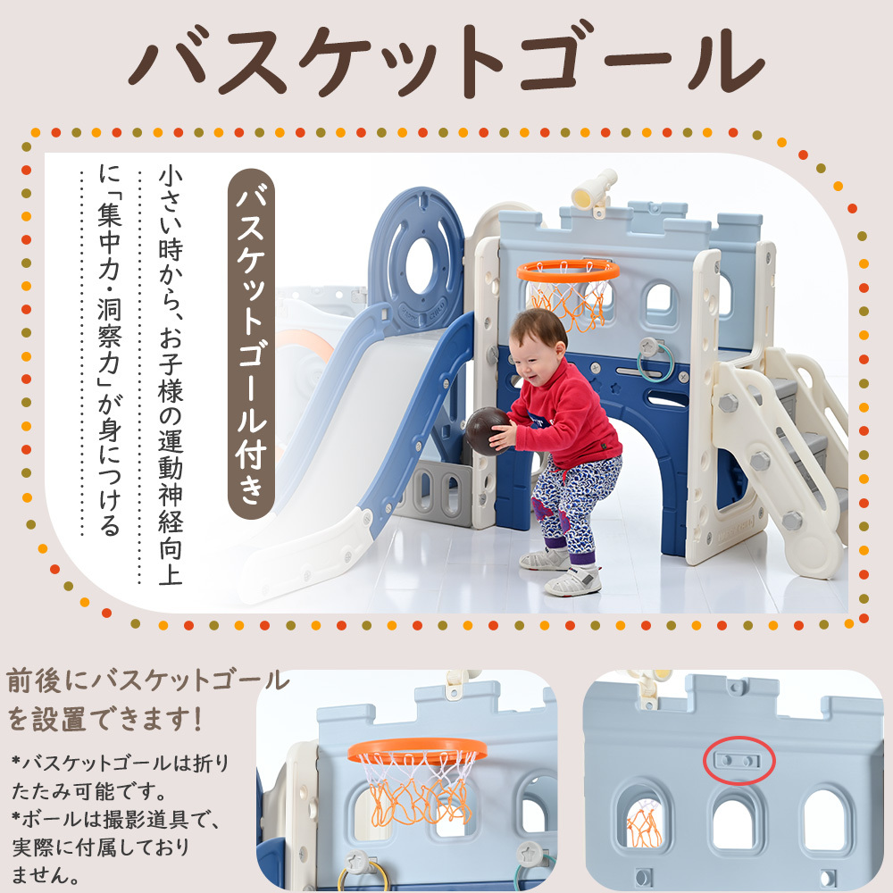 • 【バスケットゴール】バスケットゴール付き 小さい時から、お子様の運動神経向上に 「集中力・洞察力」が身につける ゴールを使わないとき、簡単に折りたためる!前後にバスケットゴールを設置できます!*ボールは撮影道具で、実際に付属しておりません。