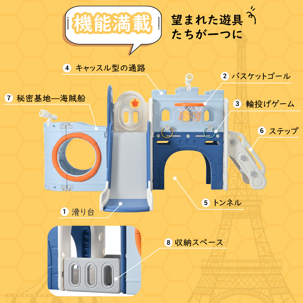 大型遊具 海賊船滑り台 ゴール遊び 輪投げ 室内遊具 すべりだい 屋内 収納スペース 子供 キッズ 男の子 女の子 誕生日 ブルー