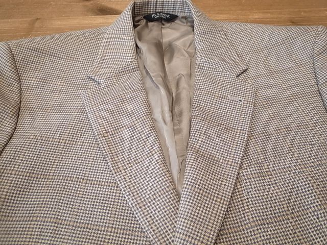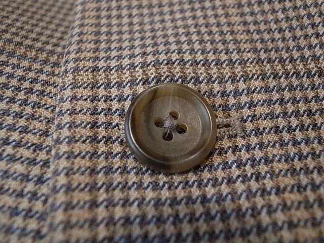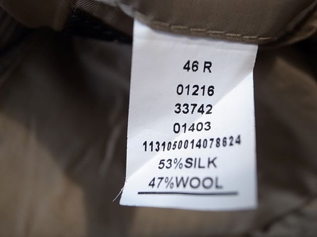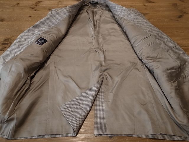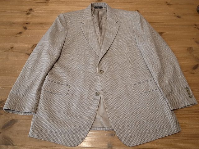 ◆ブランド 「JOS.A.BANK」 アメリカ古着 ●サイズ表記 48R 実寸サイズ 4XL(5L)相当 肩幅…51cm(肩先から肩先の間の長さ) 身幅…63cm(両脇を横直線に結んだ長さ) 着丈…81cm(後衿ぐり中央から後身頃裾) 袖丈…65cm(袖付けの肩先から袖先) ※平置き状態での素人採寸ですので、多少の誤差はご了承ください。 ●素材…53%SILK 47%WOOL 秋冬春向き ●色…ベージュ×茶×紺など 千鳥格子ピンチェック ●ポケット… フラップポケット ●裏地…総裏仕立て ●ベント…センターベント ●製造国表記…INDIA ●状態…使用感は少ない美品です。 ★送料 全国一律 700円 佐川急便 (北海道900円 沖縄その他離島1700円) ※複数ご購入の場合、同梱発送可能です。 |