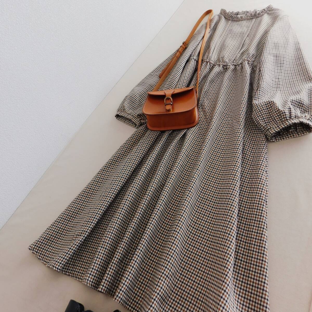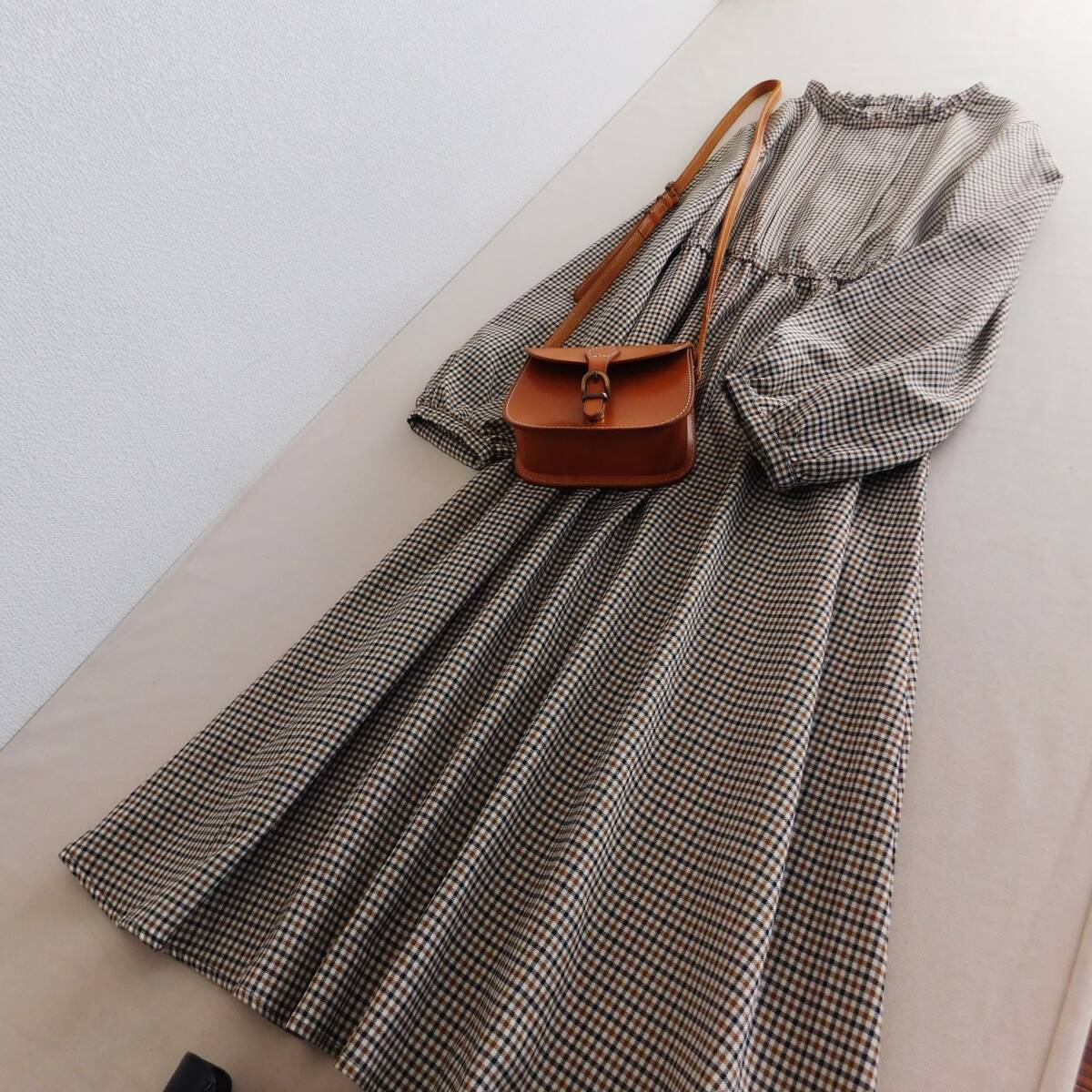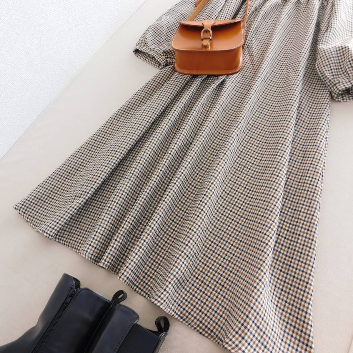 黒・ベージュのチェック柄のワンピースがかわいいです。
