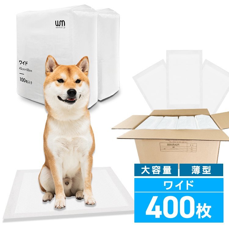 6層構造&ポリマーがしっかり吸水し、おしっこの逆戻りも少なく、裏漏れを防ぎます。 さらにシーツの四隅に圧着加工を施し、サイド漏れを防止します! 薄型でコンパクトなので、収納時やゴミ捨ての際にかさばりません。 製造後にUV除菌を行っているので、安心してご使用いただけます。 シートの色はホワイトなので、健康状態の目安になるおしっこの色もチェックしやすい! ケージの中に敷いたり、ネコ用トイレとしても最適です♪ 【商品仕様】 サイズ:(約)60cm×45cm 吸水目安:(約)200cc 枚数:400枚 (犬用トイレ 犬トイレ イヌ いぬ ワンちゃん 猫用トイレ 猫トイレ ネコ ねこ ねこちゃん 多頭飼い 無香料 抗菌 使い捨て まとめ買い 人気 おすすめ 安い WEIMALL) |