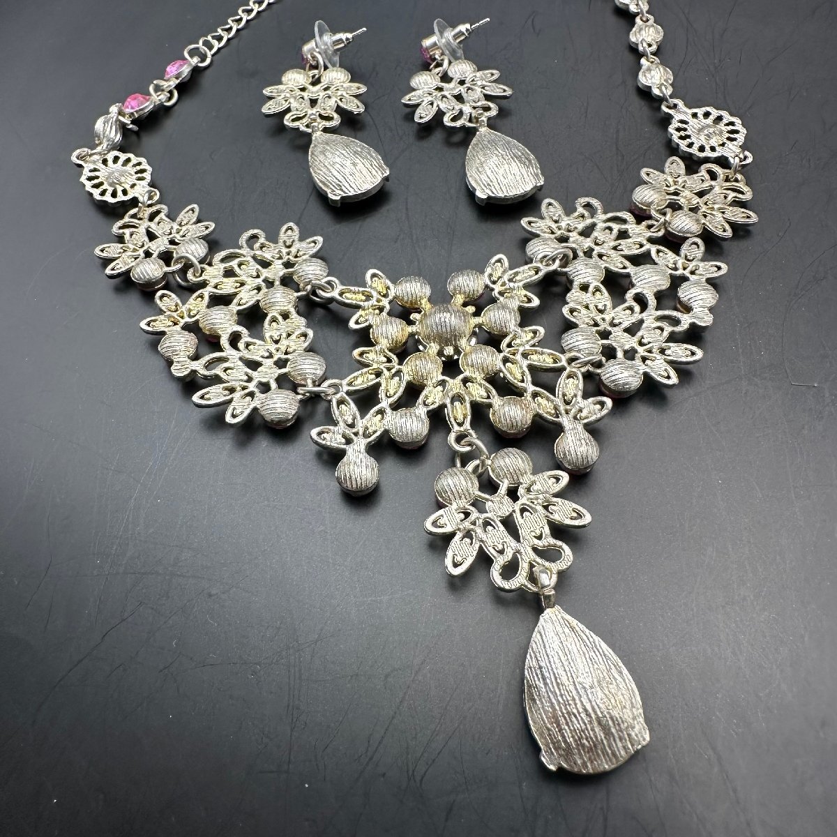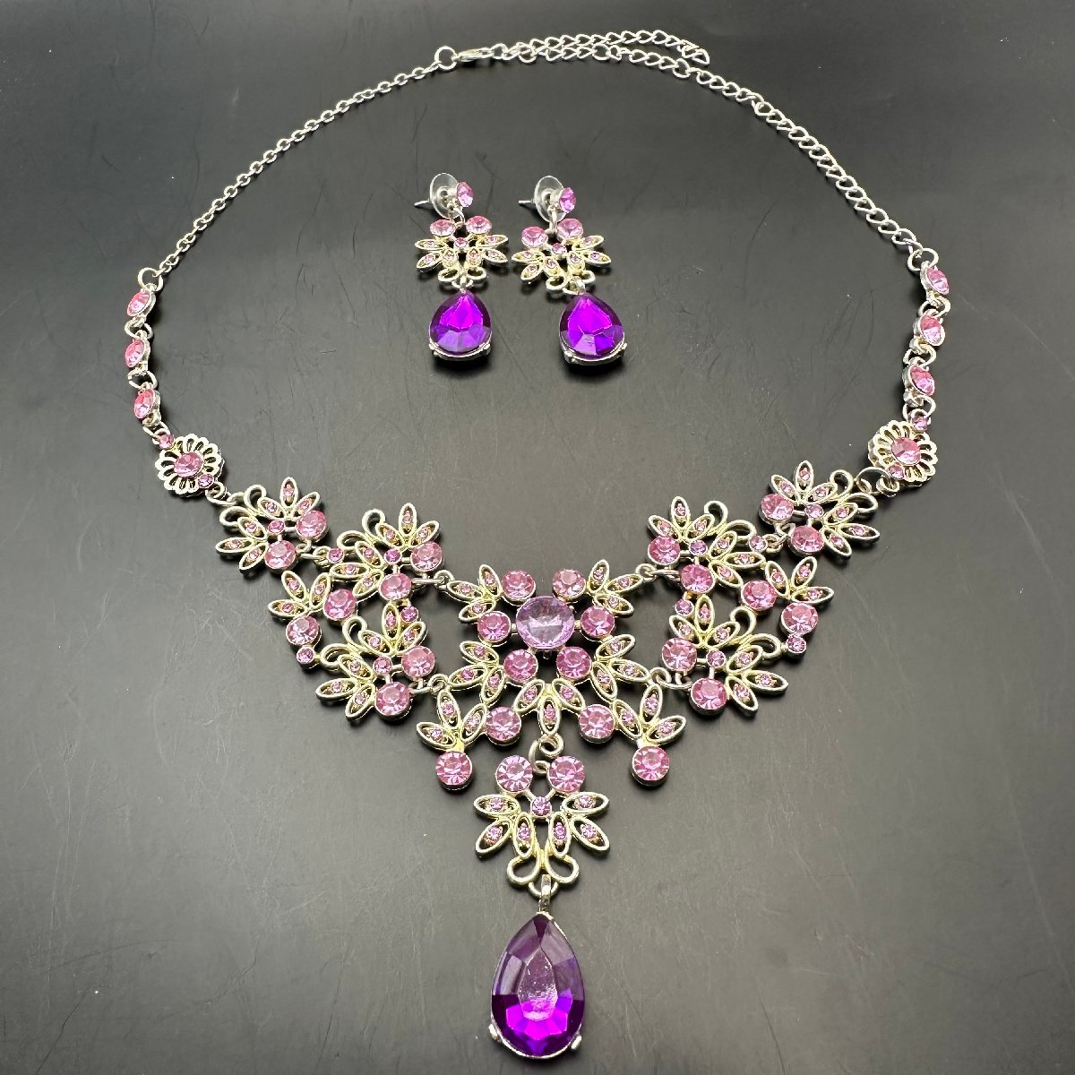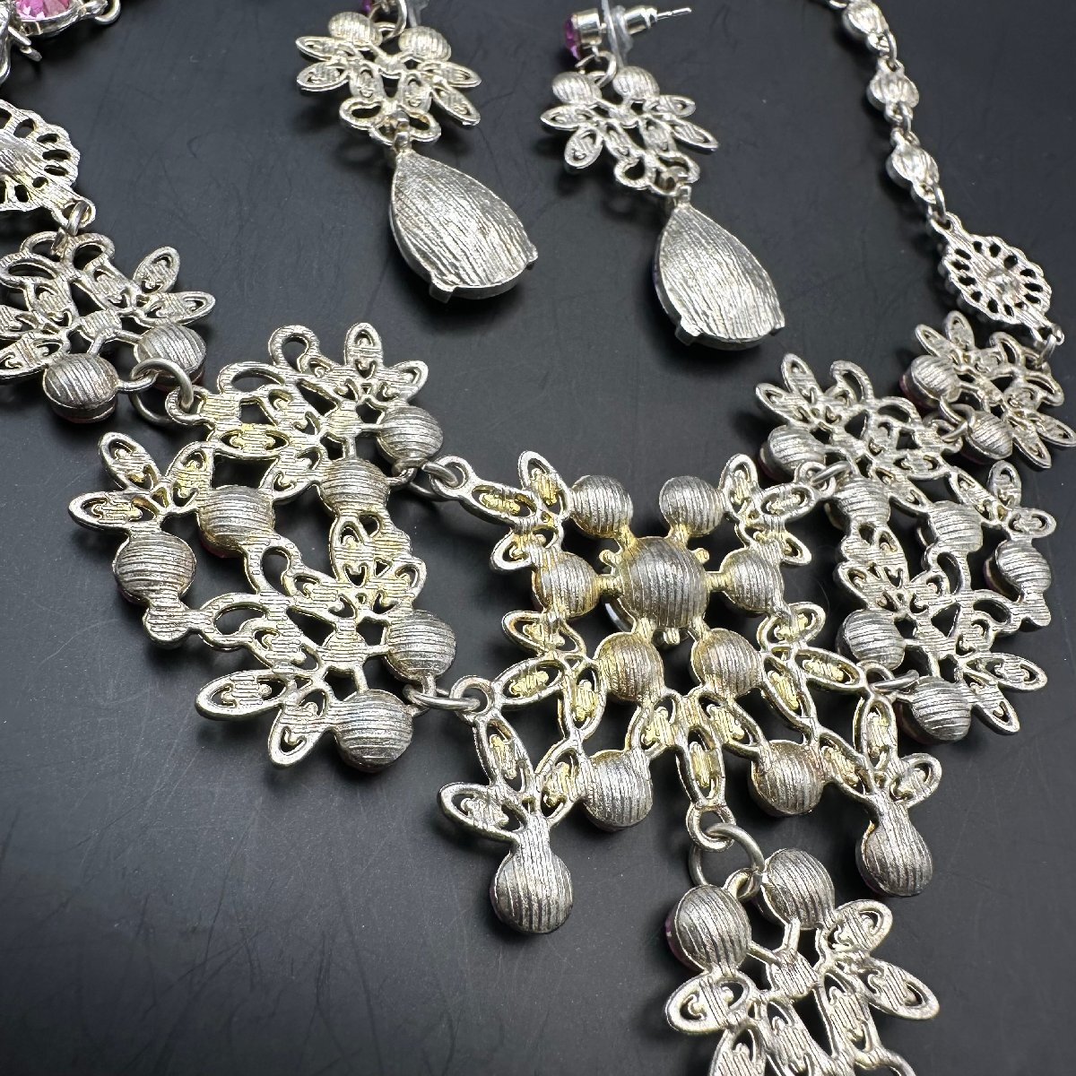 q560 ネックレス ピアス ブライダルアクセサリー ラインストーン セット売り
