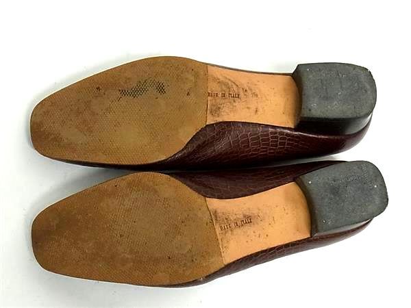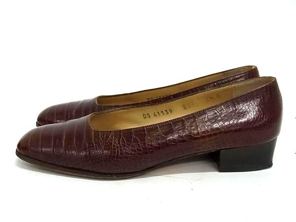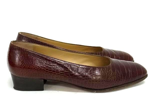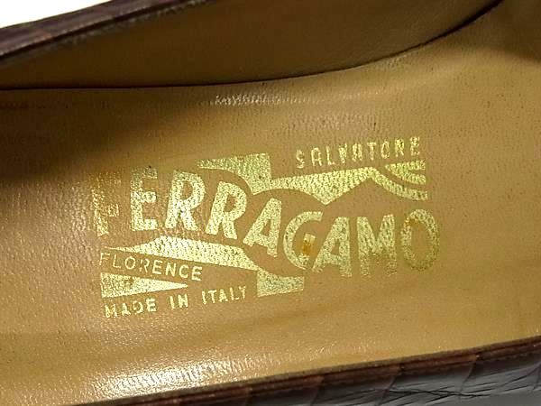 ■美品■ Salvatore Ferragamo フェラガモ クロコダイル型押しレザー ヒール パンプス サイズ 6 1/2(約24cm) 靴 ブラウン系 DJ0772