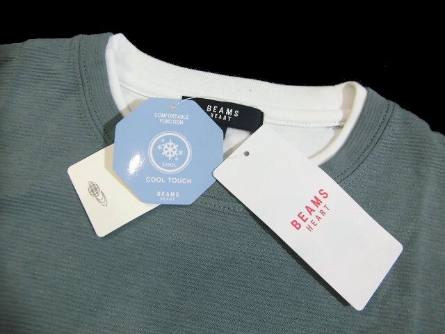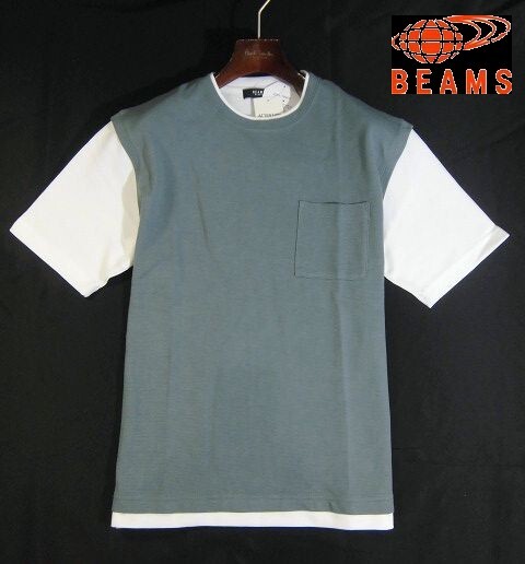 ※月363新品▼ ビームス BEAMS フェイクレイヤード 半袖Tシャツ 【 M 】 半袖カットソー 接触冷感素材 クールタッチ 重ね着くすみグリーン