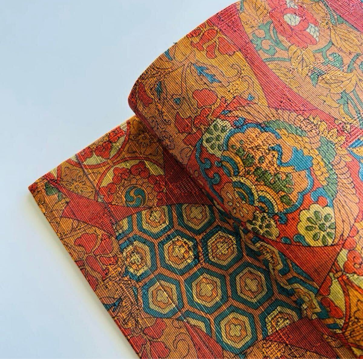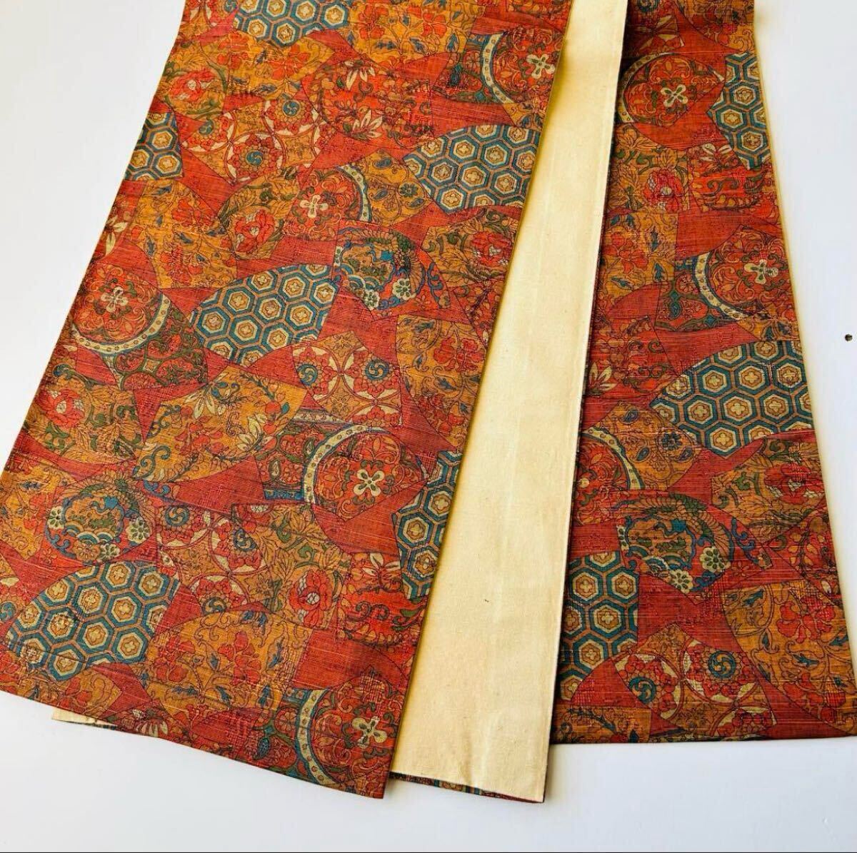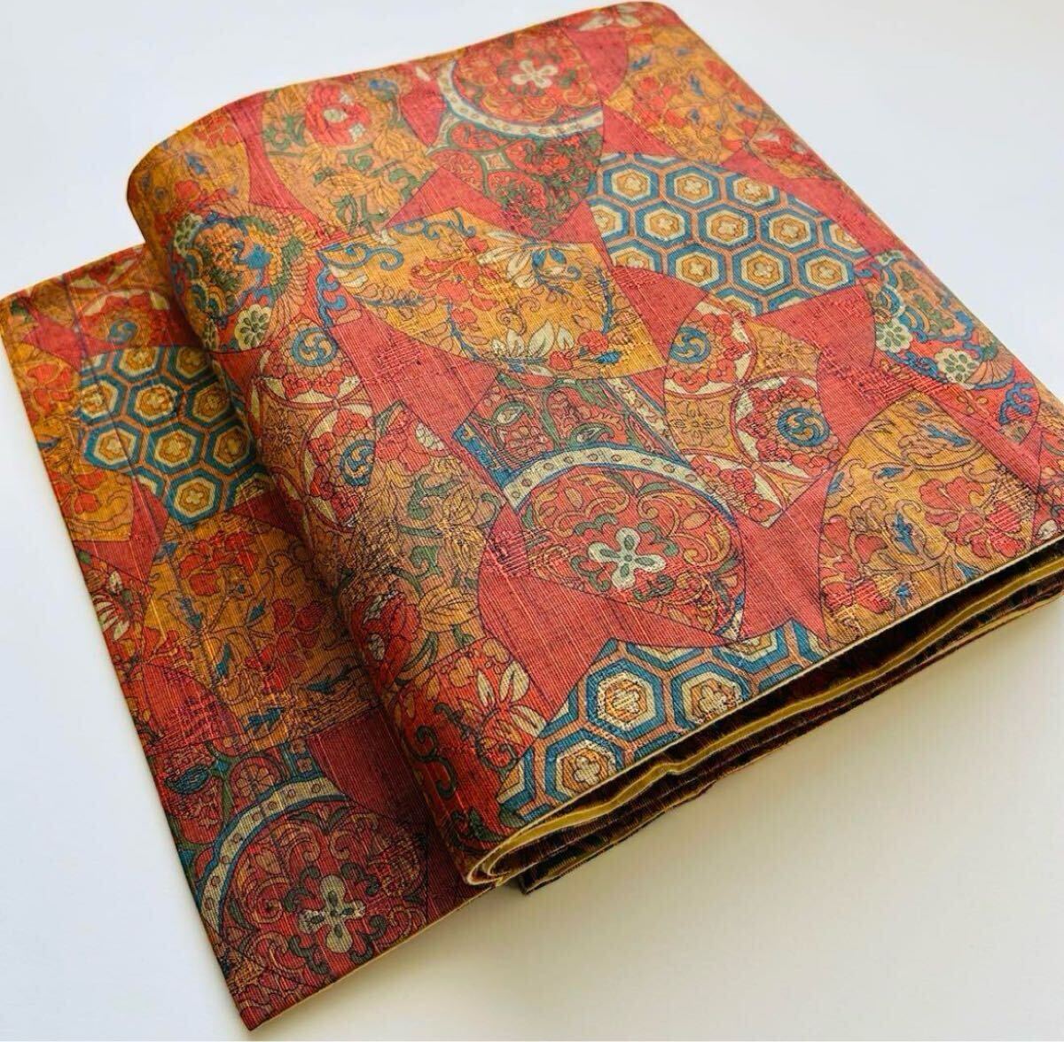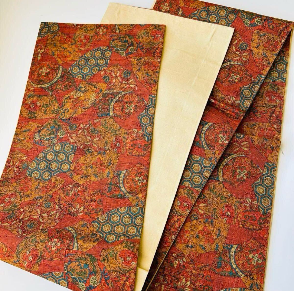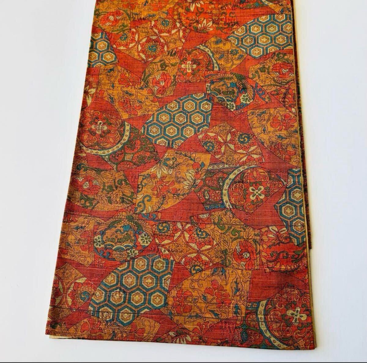 【楓】洒落袋帯 正絹 扇に亀甲やお華 唐草 総柄 KU-3663