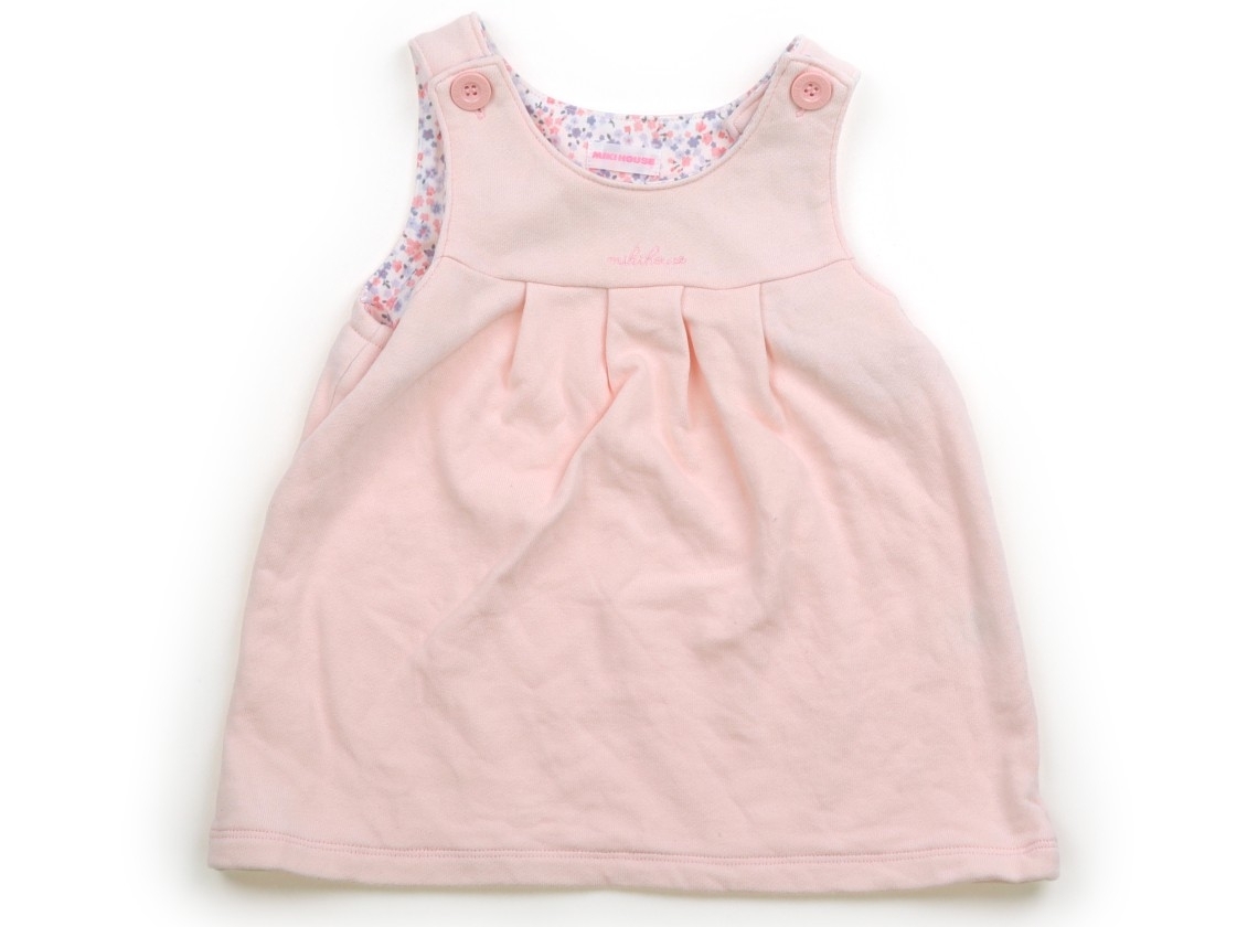 トレーナー生地。胸あて上部には花柄の裏地付き。若干白っぽさ・毛羽立ち感がありますがまだまだお使いいただけそうです。