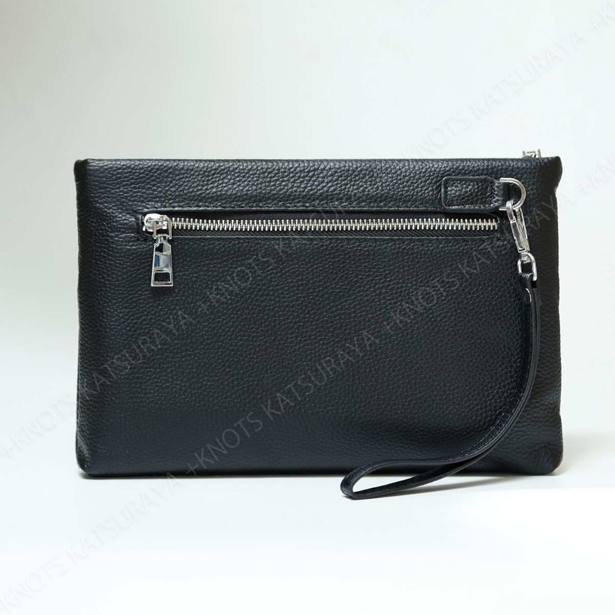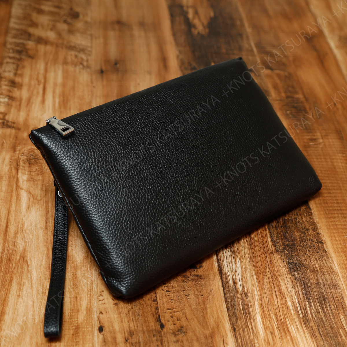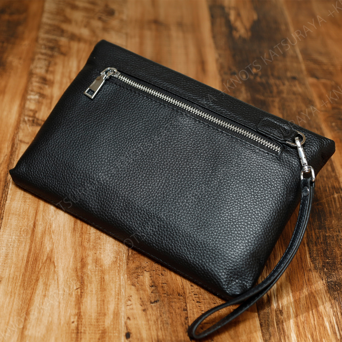 主張しすぎない、無地のシンプルなクラッチバッグです。内部には大き目のオープンポケット、カード入れ6か所、ワイドなファスナーポケットを装備。素材はキズや汚れが目立ちにくいシボのある本革を採用しました。クラッチバッグとして基本的な機能性を重視されている方におすすめです。