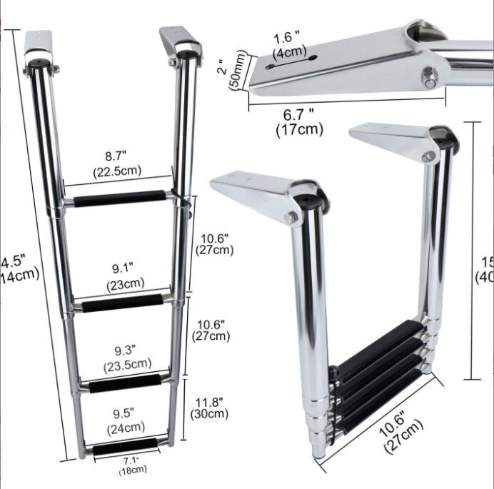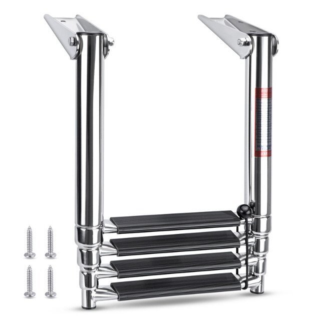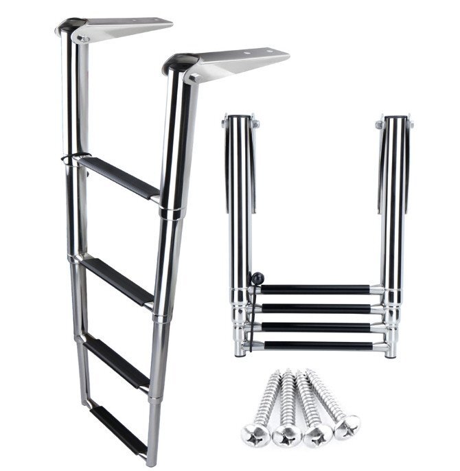 ステンレス鋼ボートはしご1PCE 4ステップ 折り畳み式 取り外し可能 トランサムマウント Fusfatwale付き 耐久性あり (A230)