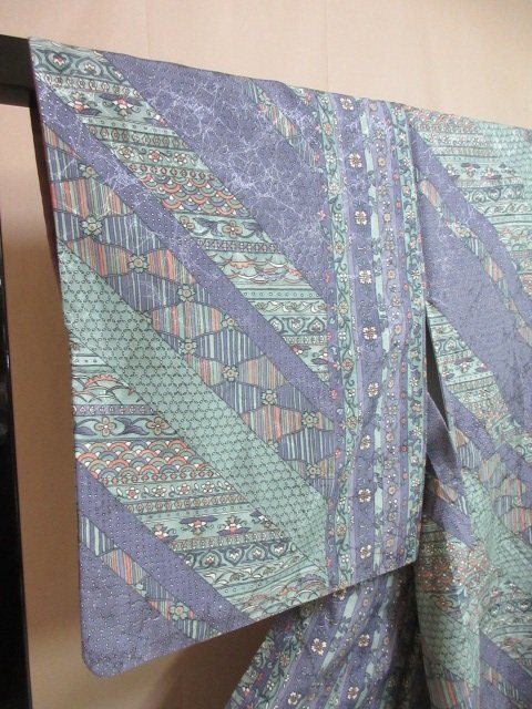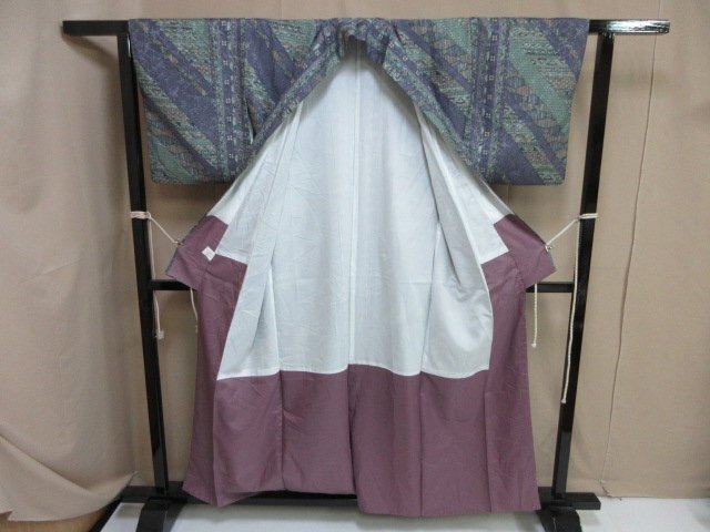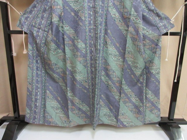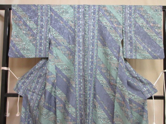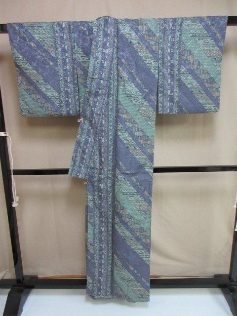 | 商品名 | 1円 良品 小紋 化繊 着物 洗える 和服 和服 斜め縞 飾り縞 花唐草 草花 お洒落 高級 袷 身丈159cm 裄66cm【夢職】★ |